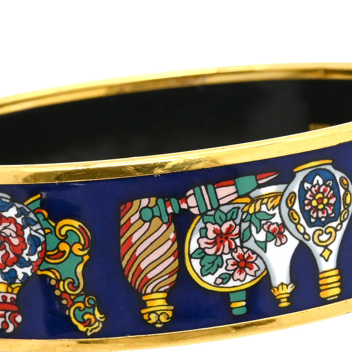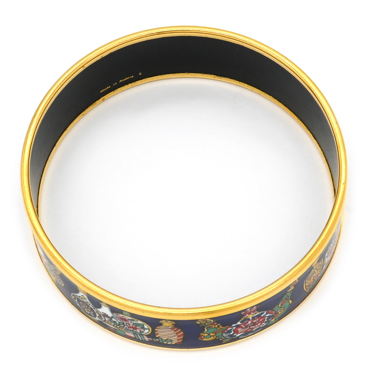 エルメス HERMES エマイユ GM ネイビー×マルチカラー 七宝焼き バングル ゴールド金具 紺
