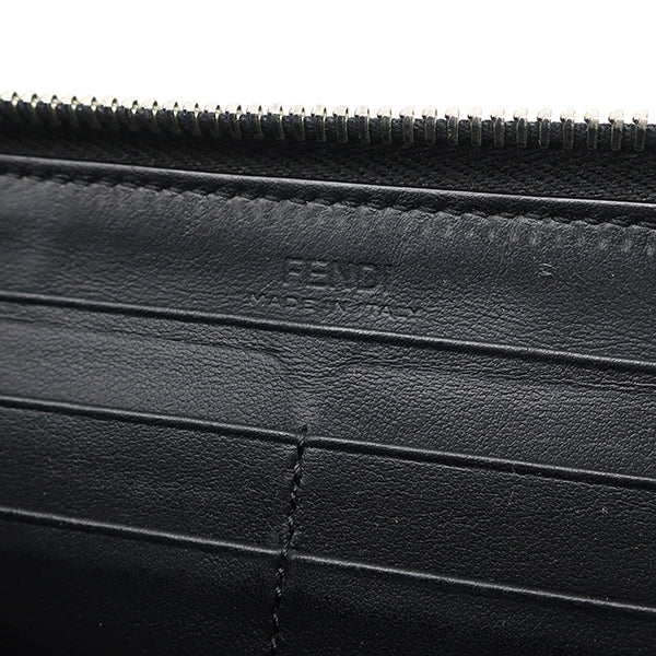 フェンディ FENDI FENDI ロゴ 7M0210 A4K3 F147M ブラック×ブラウン レザー 長財布 シルバー金具 ラウンドファスナー