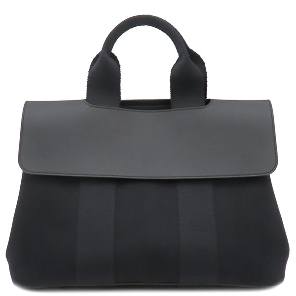 エルメス HERMES ヴァルパライソ PM ポティロン トワルシェブロン スイフト ハンドバッグ シルバー金具 黒