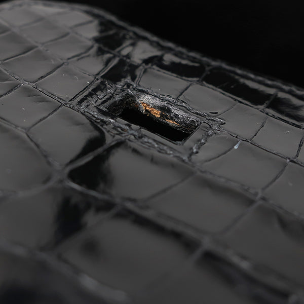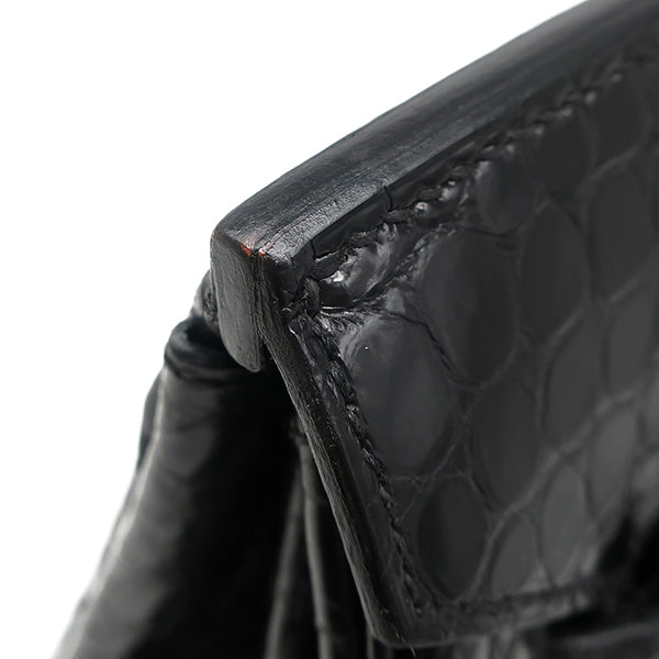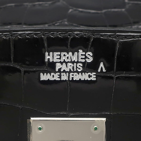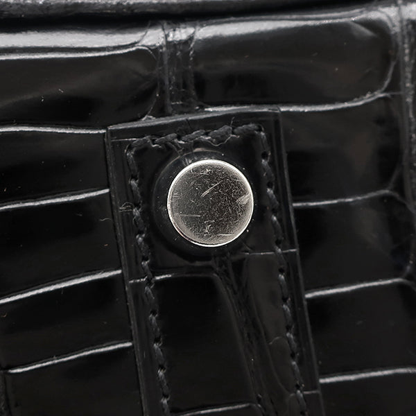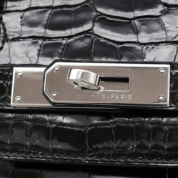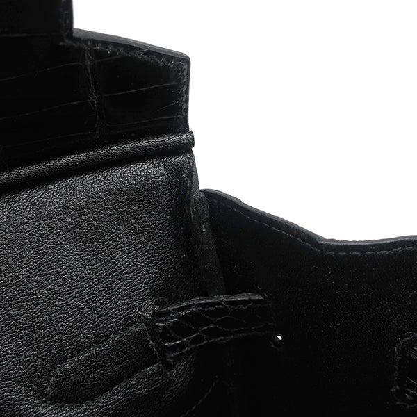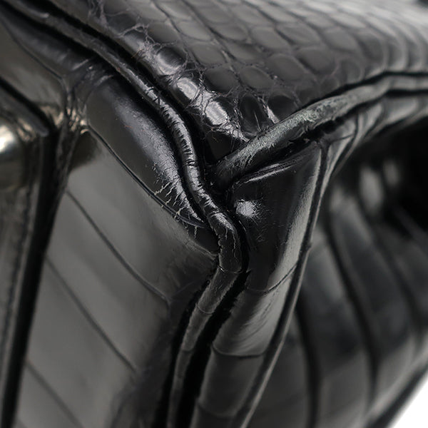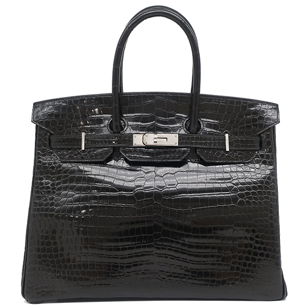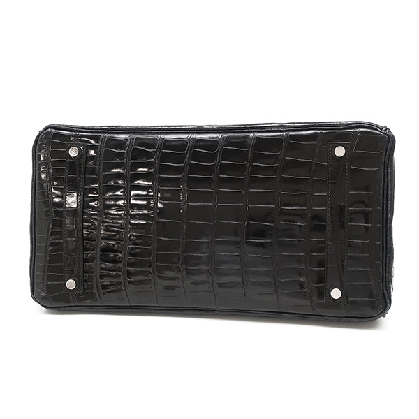 エルメス HERMES バーキン 35 ブラック ポロサス ハンドバッグ シルバー金具 黒 クロコ