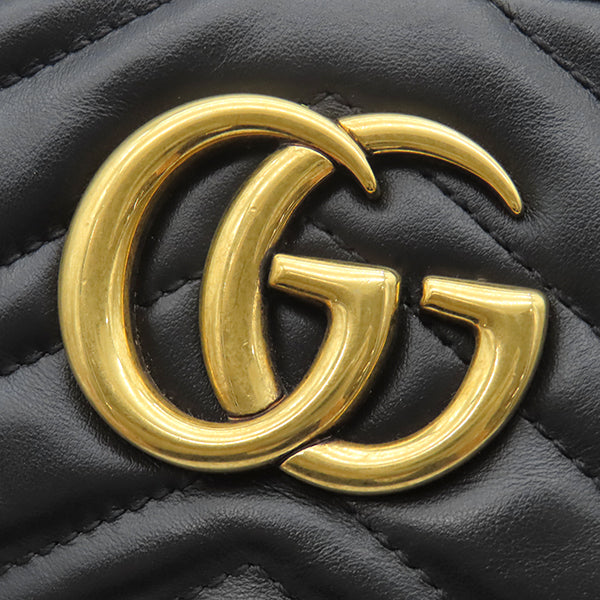 グッチ GUCCI GGマーモント スモール カメラバッグ 447632 ブラック レザー シェブロンキルティングレザー ショルダーバッグ ゴールド金具 黒 キルティングショルダー