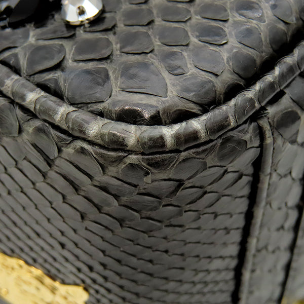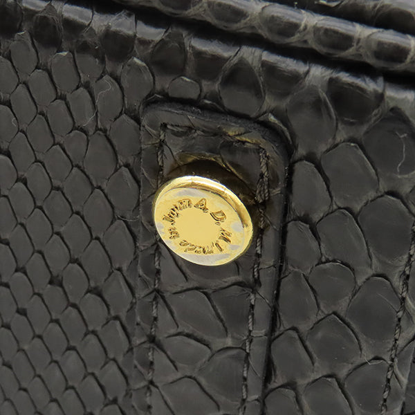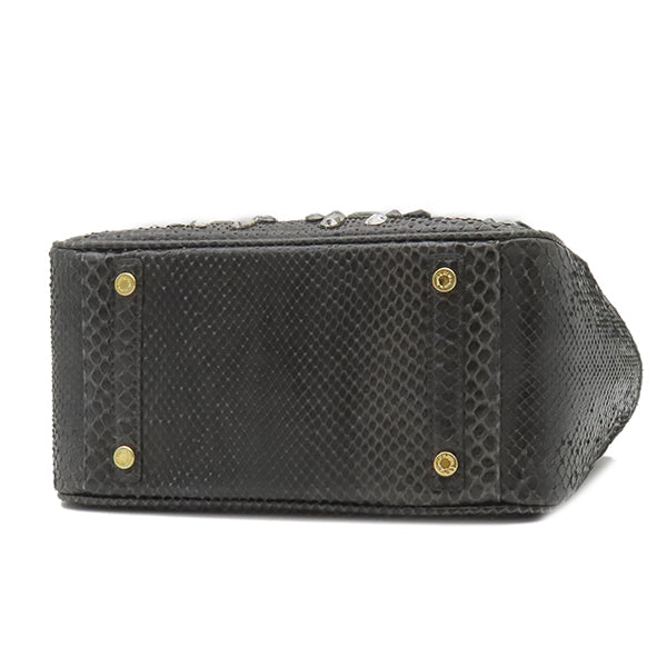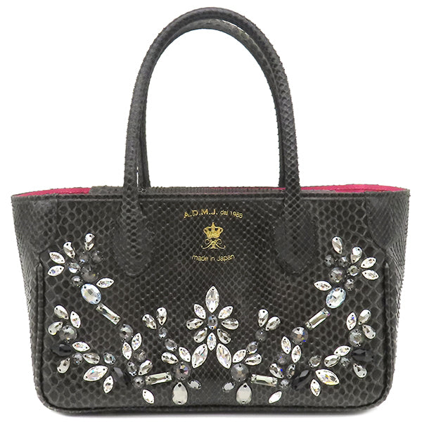 エーディーエムジェイ A.D.M.J フラワービジュー パイソン バッグ ブラック パイソン ビジュー ハンドバッグ ゴールド金具 黒