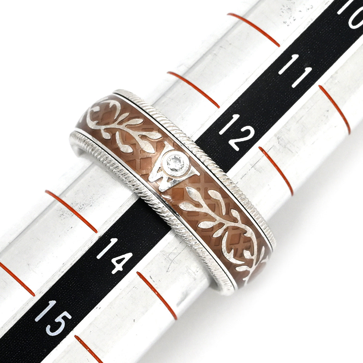 ミキモト MIKIMOTO ウェレンドルフ エマイユ ダイヤリング ブラウン×ホワイトゴールド×イエローゴールド #53.5 リング 指輪 Wellendorff エナメル 七宝 エングレービング 回転 13号