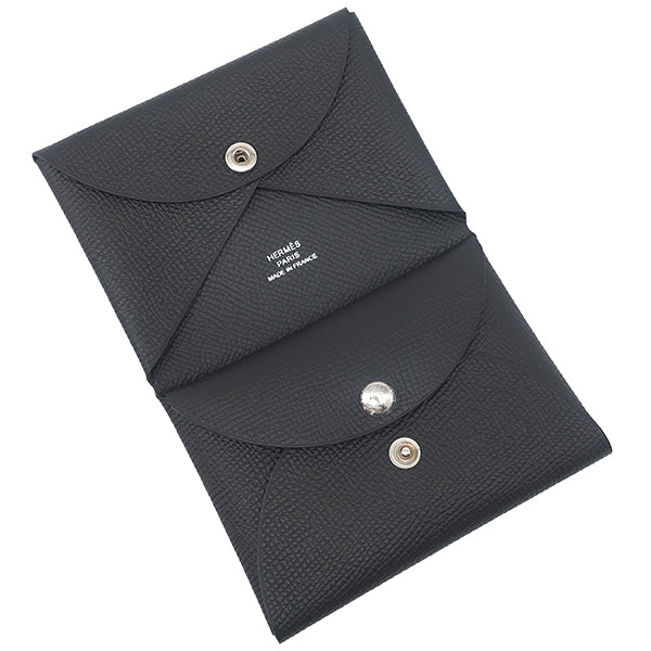 エルメス HERMES カルヴィ デュオ ブラック ヴォーエプソン カードケース シルバー金具 黒 フラグメントケース