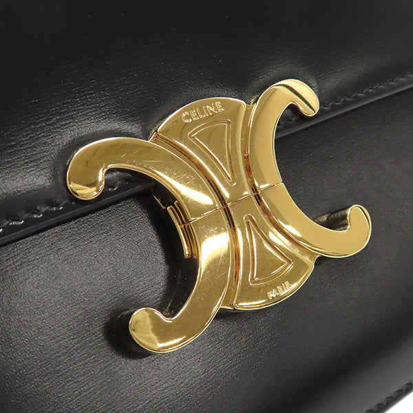 セリーヌ CELINE クラシック トリオンフ バッグ 187363BF4.38NO ブラック カーフ シャイニーカーフスキン ショルダーバッグ ゴールド金具 黒 フラップ 斜め掛け