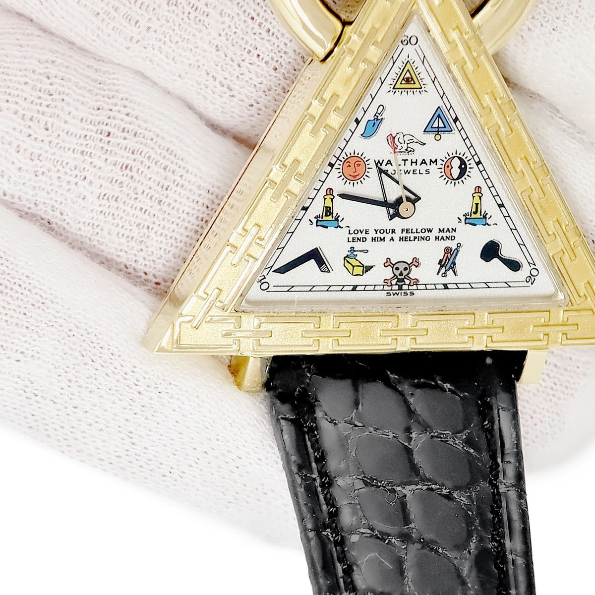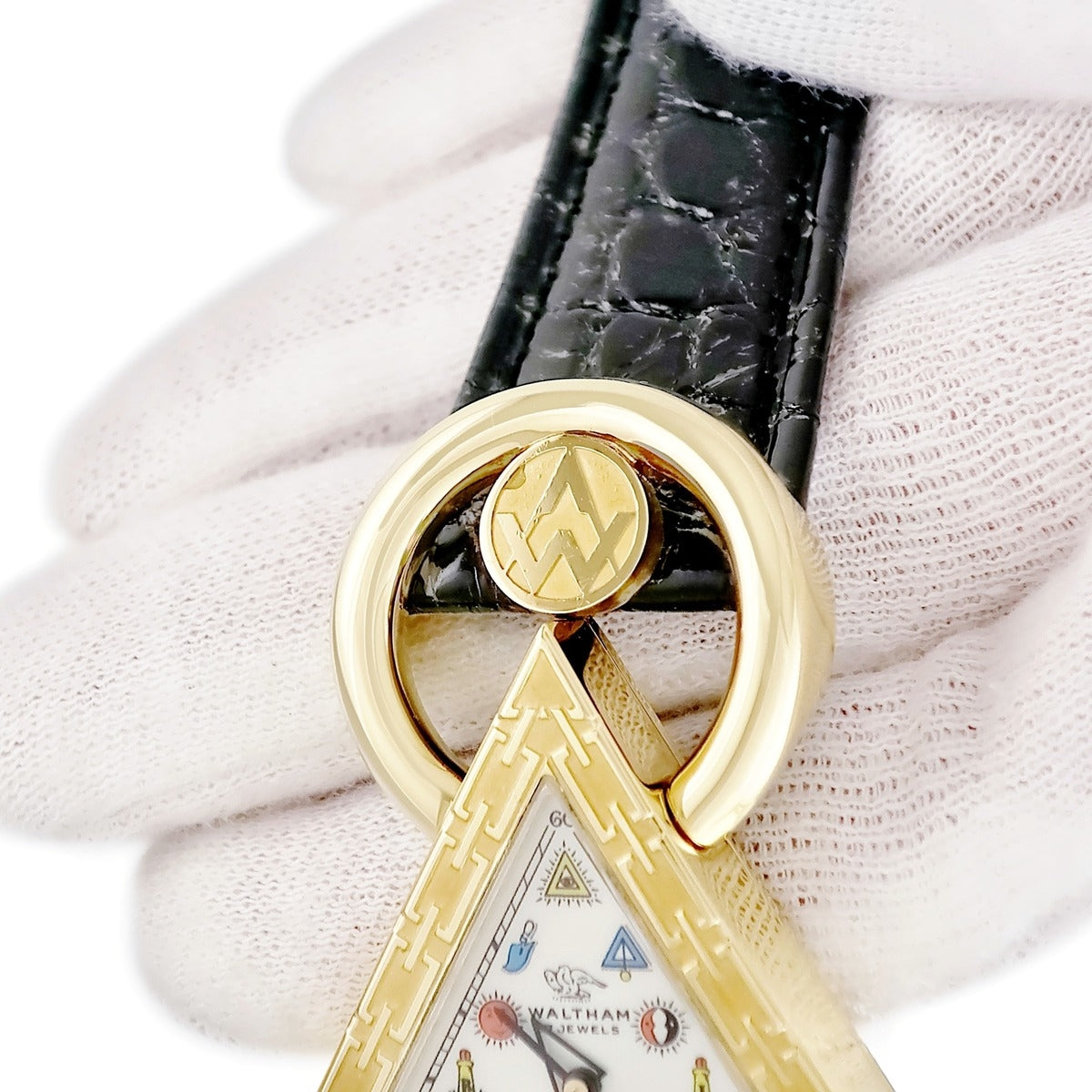 ウォルサム WALTHAM フリーメイソン トライアングル 96380.74 手巻き メンズ K18YG無垢 シルバー 三角形 アンティーク 限定