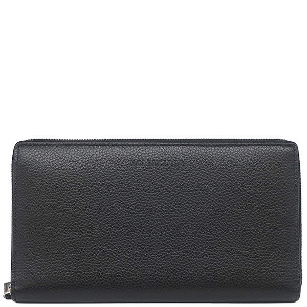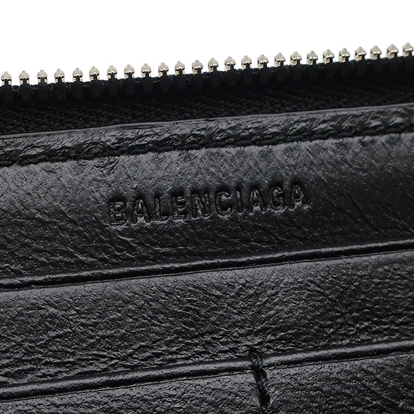バレンシアガ BALENCIAGA ラウンドファスナー ブラック レザー 長財布 シルバー金具 黒