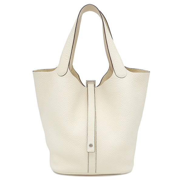 エルメス HERMES ピコタンロックMM ナタ トリヨンクレマンス ハンドバッグ シルバー金具 アイボリー