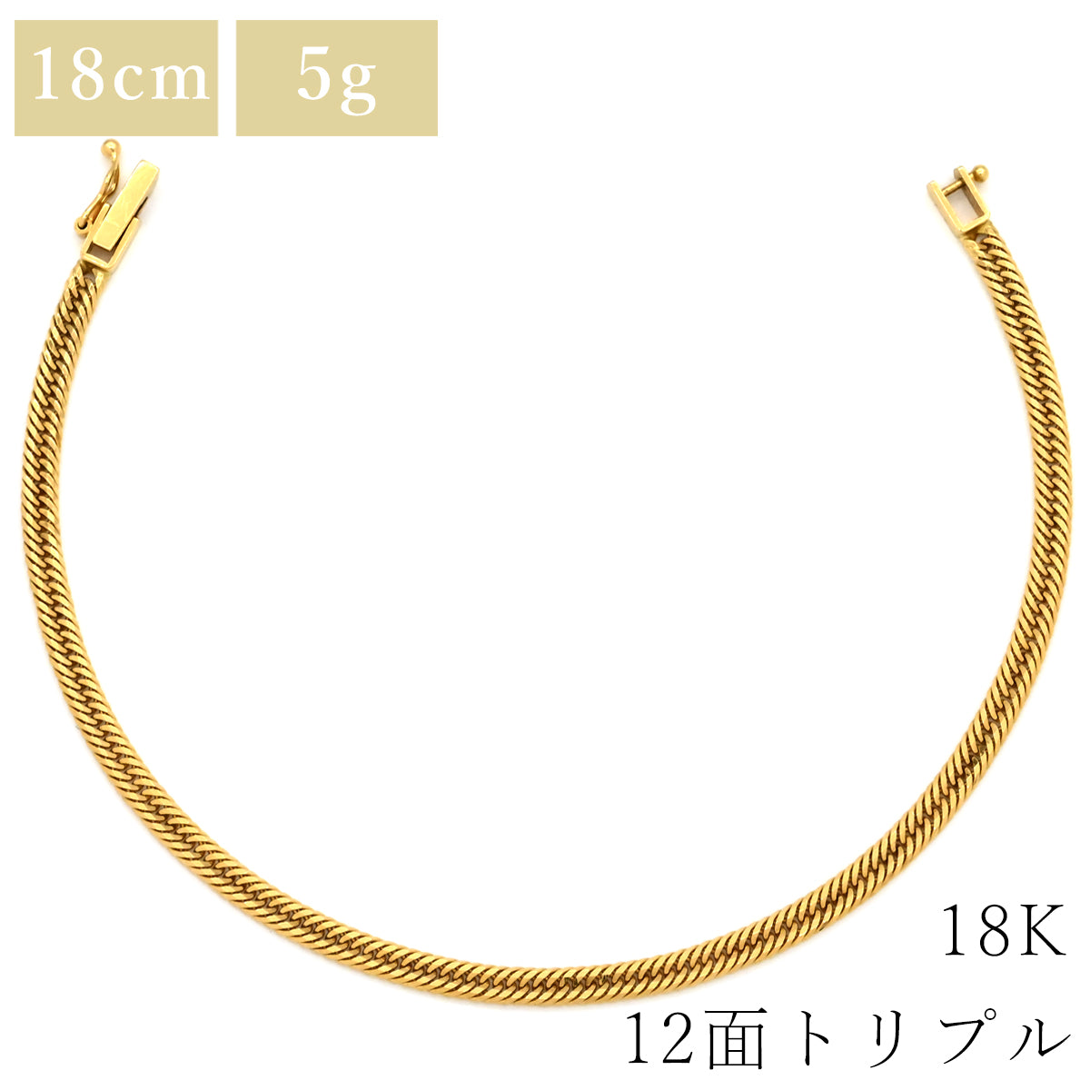 喜平 KIHEI K18 18金 18.5cm 5.1g 12面 トリプル イエローゴールド K18YG ブレスレット 造幣局検定マーク ショッピングローン対応していません