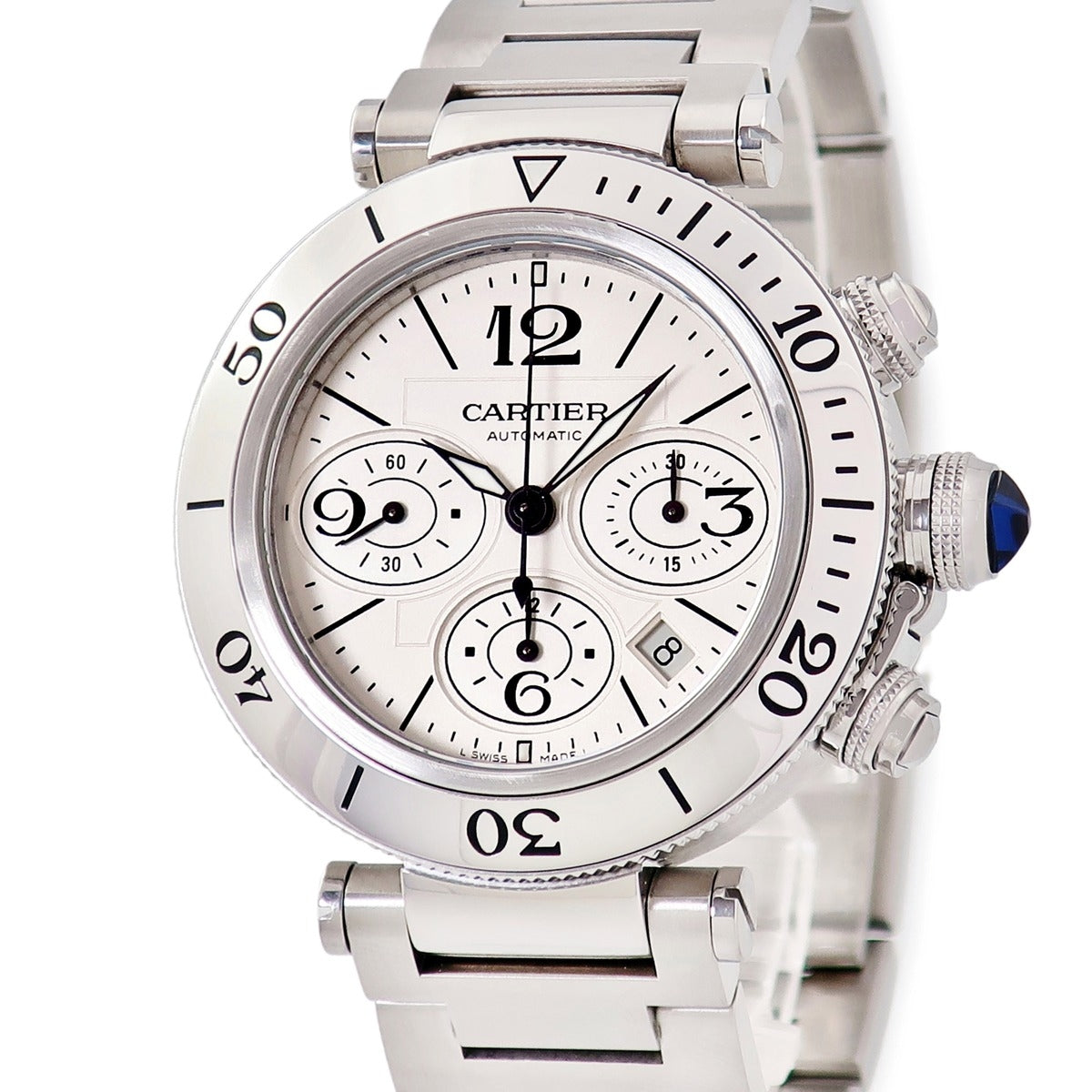 カルティエ Cartier パシャ シータイマー クロノグラフ W31089M7 自動巻き メンズ シルバー デイト 逆回転防止ベゼル