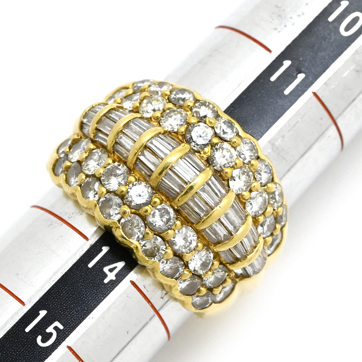 ノンブランド NON BRAND ダイヤモンド 3.50ct イエローゴールド リング 指輪 K18 Au750 YG パヴェダイヤ 13.5号
