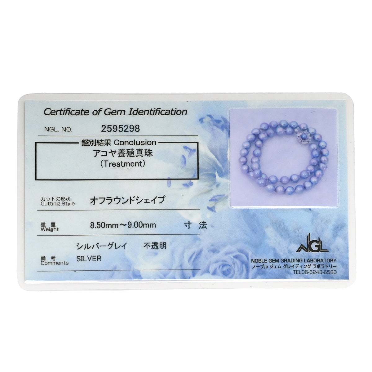 ノンブランド NON BRAND 8.5mm パール ペンダント グレー×シルバー ネックレス 真珠 アコヤ あこや シルバーグレイ 灰色 一連 アコヤ真珠 43.5cm オフラウンドシェイプ