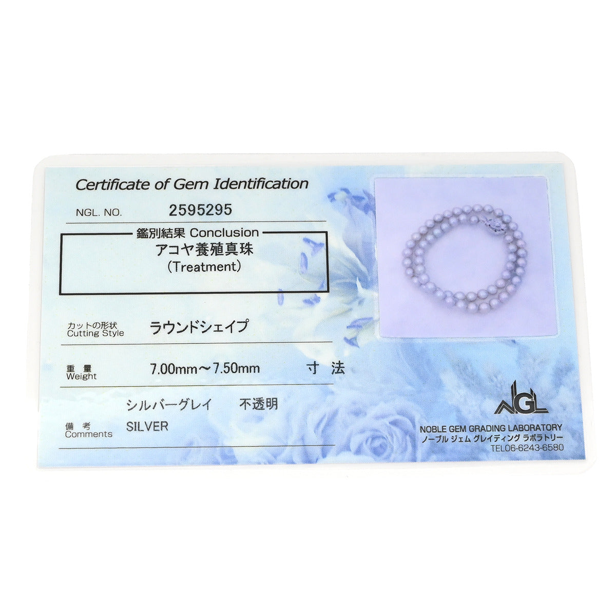 ノンブランド NON BRAND 7mm パール ペンダント グレー×シルバー ネックレス 真珠 アコヤ あこや シルバーグレイ 灰色 一連 アコヤ真珠 43.5cm ラウンドシェイプ