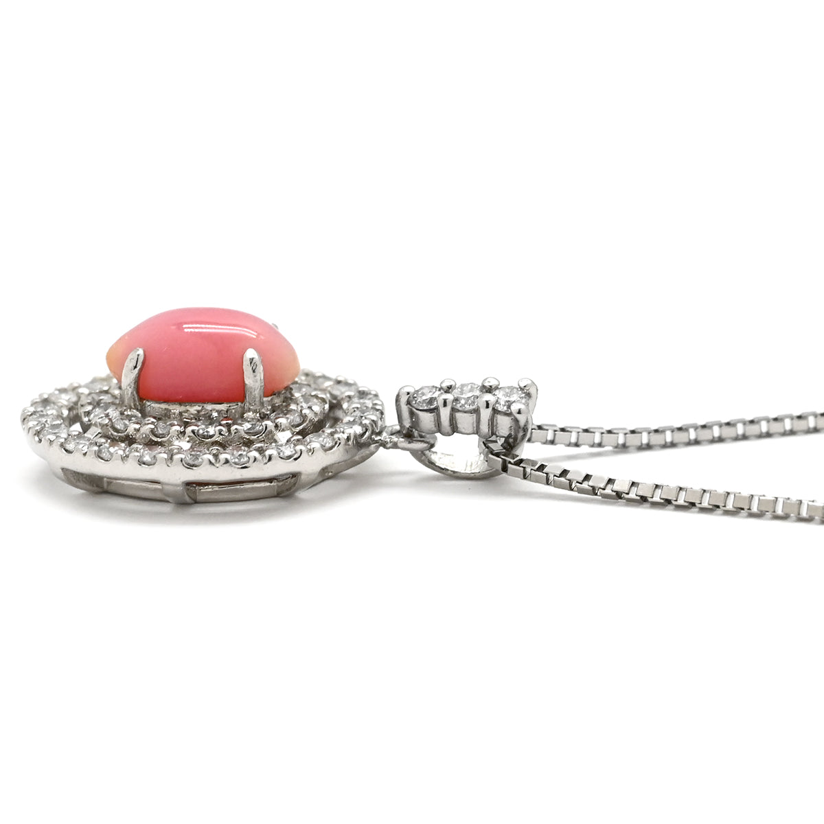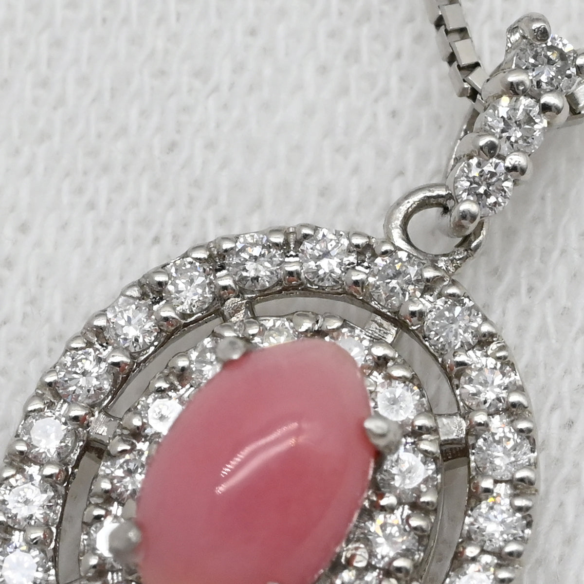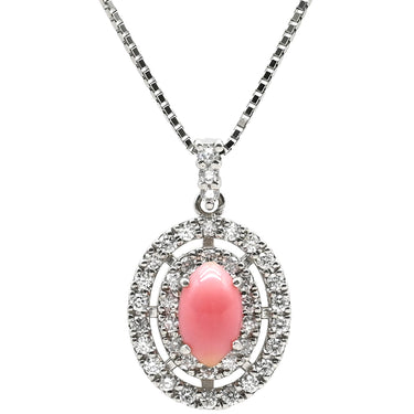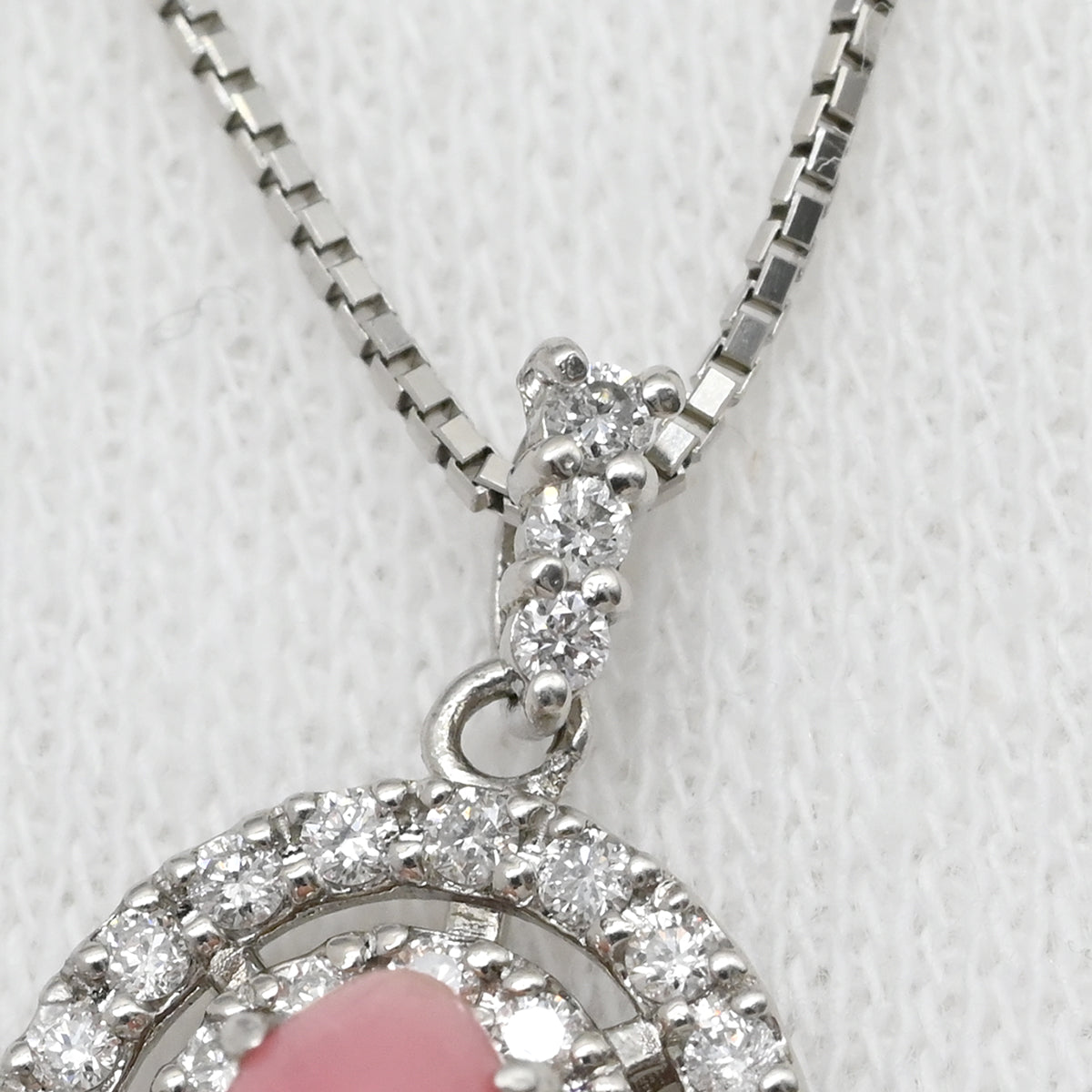 ノンブランド NON BRAND コンクパール プラチナ プラチナシルバー×ピンク ネックレス Pt900×Pt850 コンビ パヴェダイヤ ヘイロー オーバル型