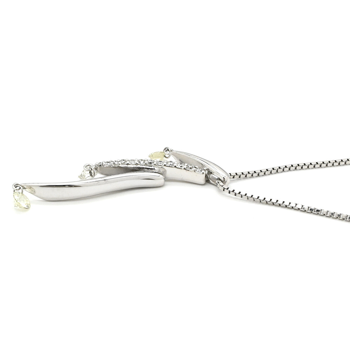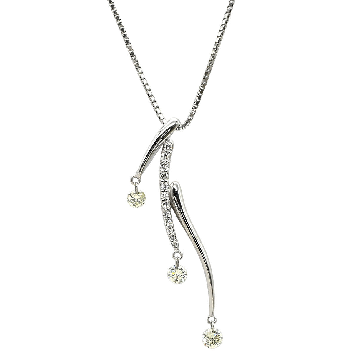 ノンブランド NON BRAND トリロジー ダイヤペンダント ホワイトゴールド ネックレス 3P 3粒 スリーストーンネックレス 18K WG Au750 縦長ライン ボックスチェーン