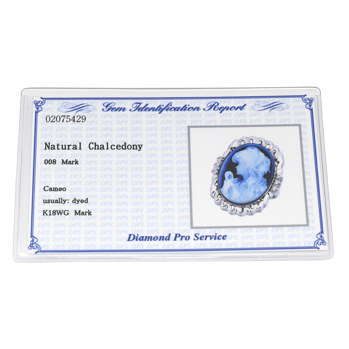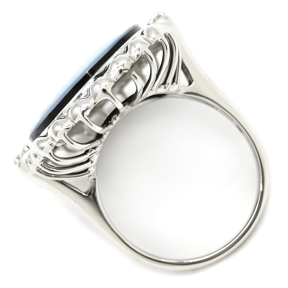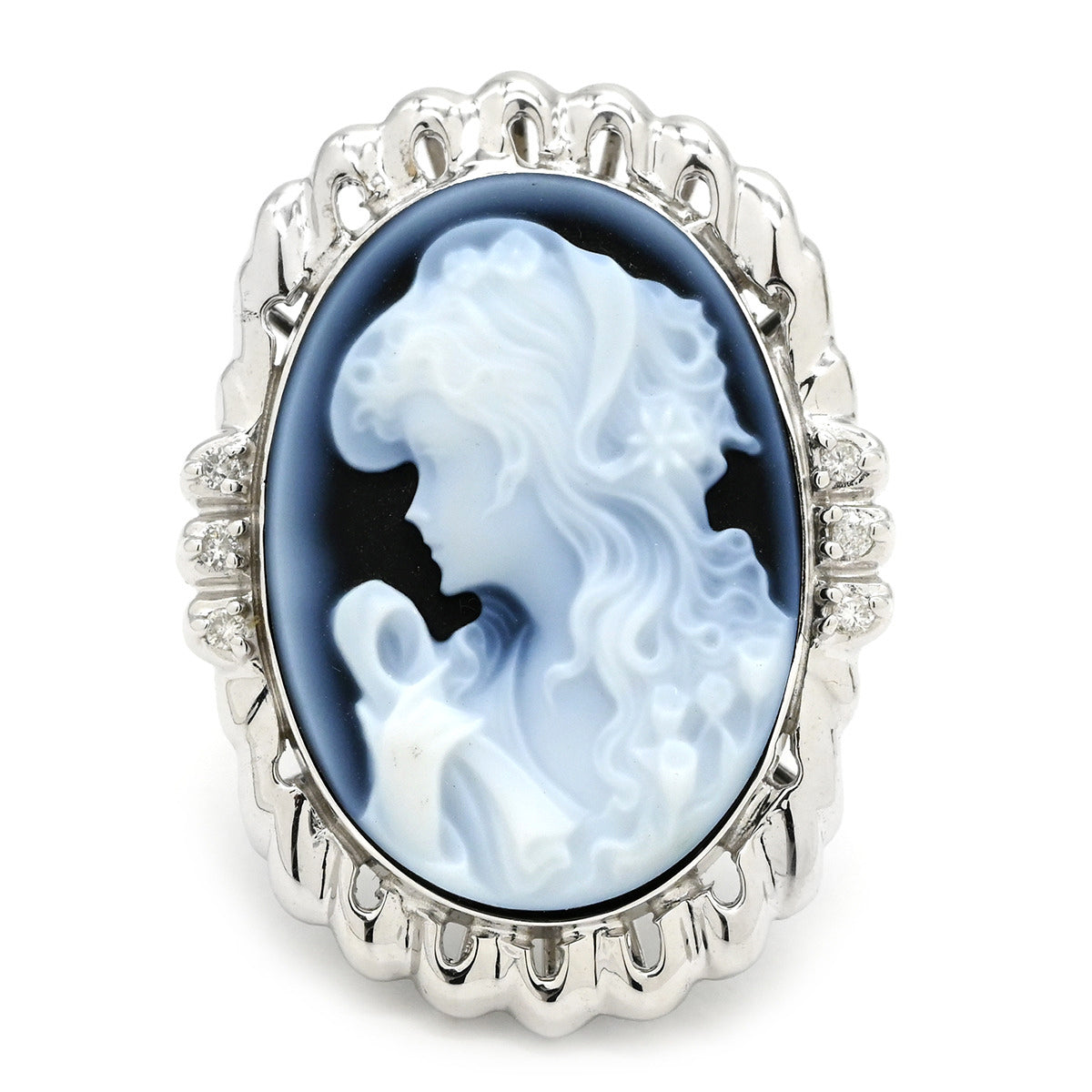 ノンブランド NON BRAND カメオリング ダイヤ ホワイトゴールド リング 指輪 カルセドニー 彫刻 ダイヤモンド 18K WG 750 アンティーク 15号