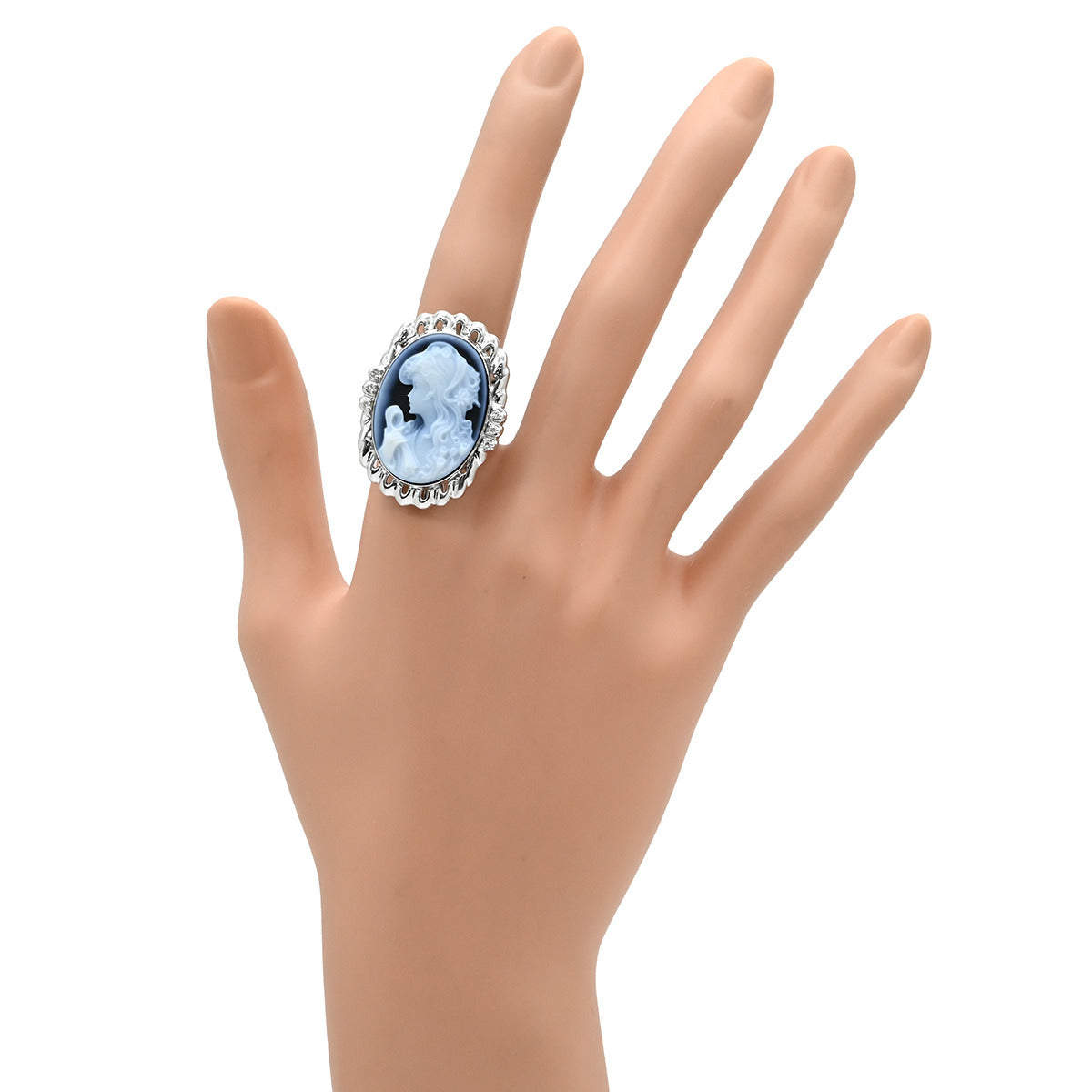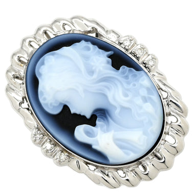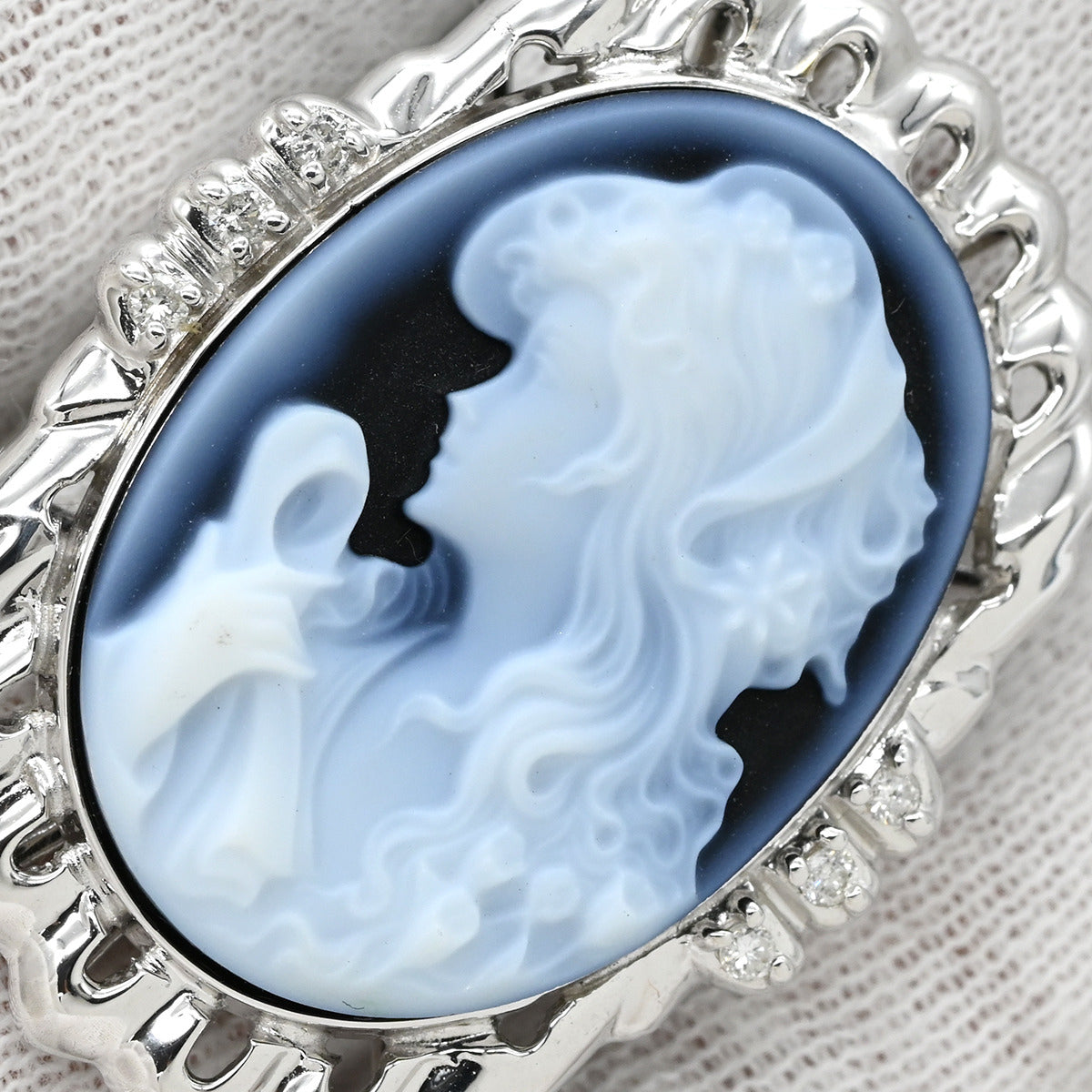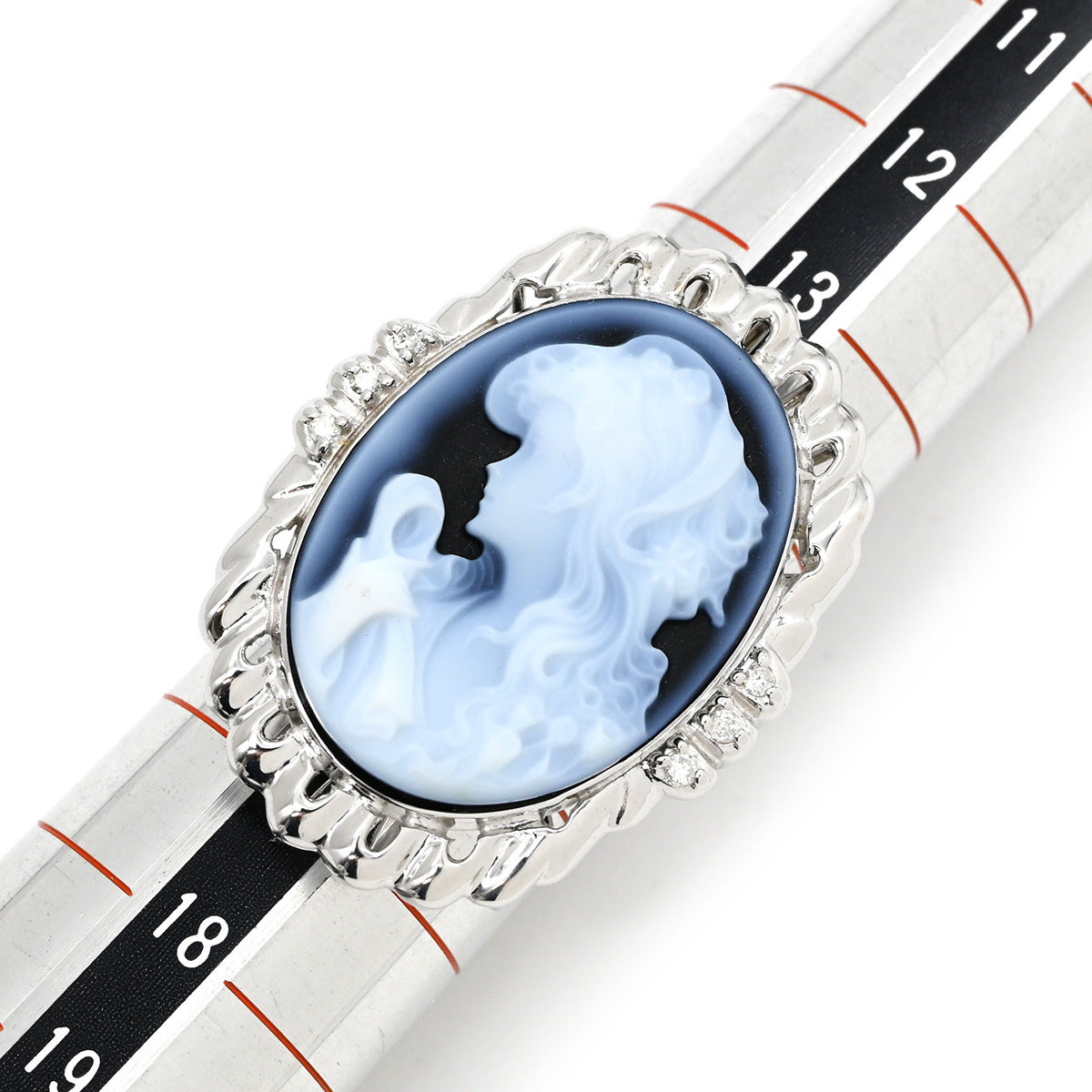 ノンブランド NON BRAND カメオリング ダイヤ ホワイトゴールド リング 指輪 カルセドニー 彫刻 ダイヤモンド 18K WG 750 アンティーク 15号