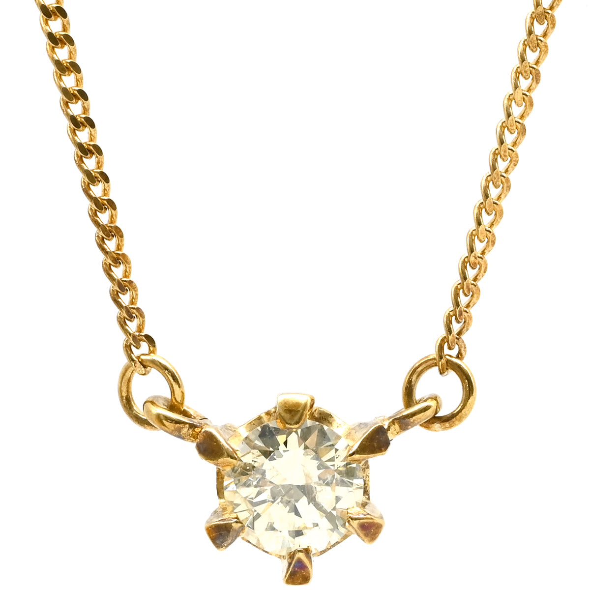 ノンブランド NON BRAND 1Pダイヤ ペンダント イエローゴールド ネックレス Au750 18K YG ラウンドブリリアントカット 1粒 6本爪