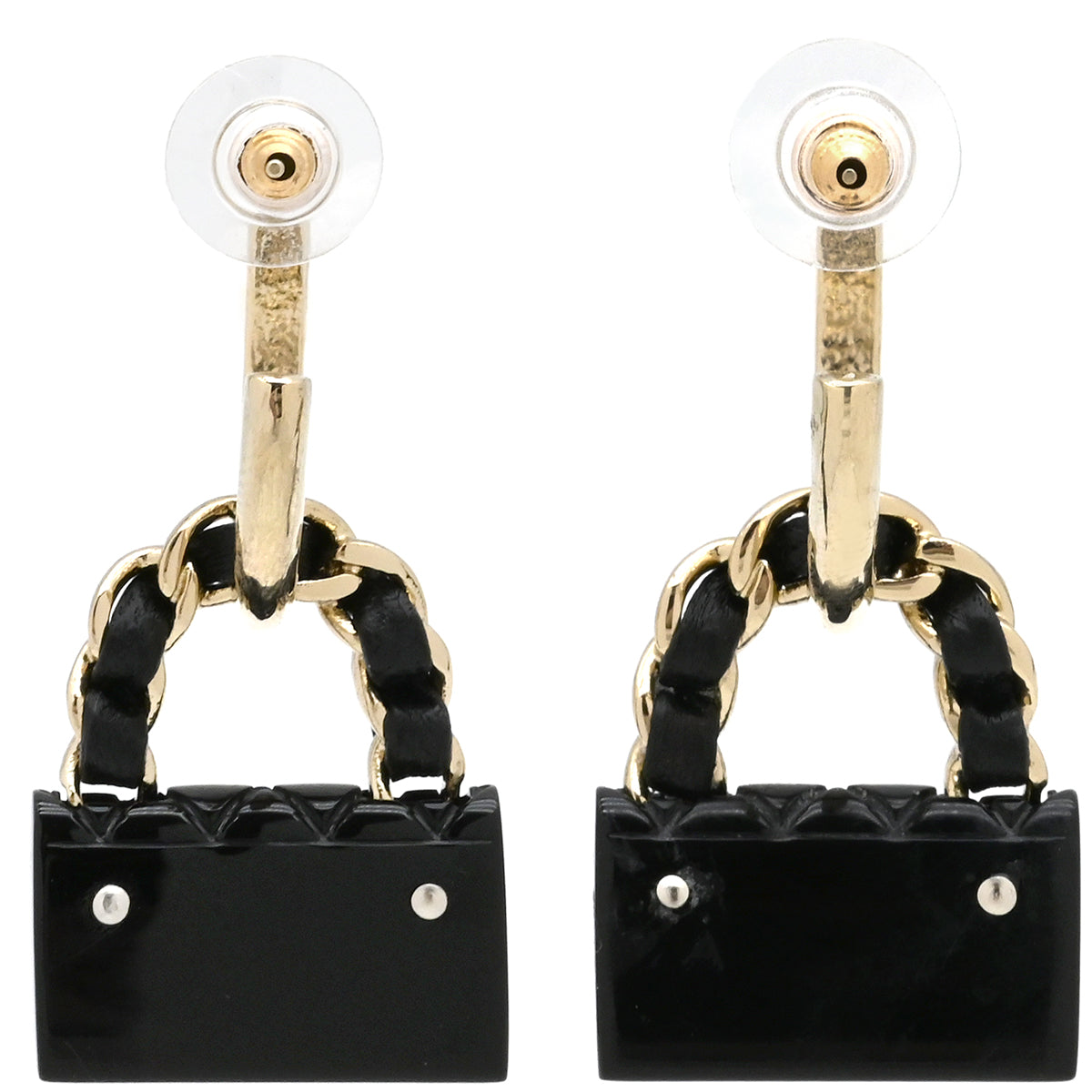シャネル CHANEL マトラッセバッグ モチーフ フープ ABA009 ブラック×ゴールド GP レジン ピアス シャンパンゴールド金具 ココマーク CCマーク