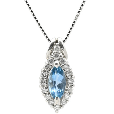 ノンブランド NON BRAND アクアマリン 0.70ct ダイヤ ペンダント プラチナシルバーXホワイトゴールド ネックレス ブルー 青 マーキスカット