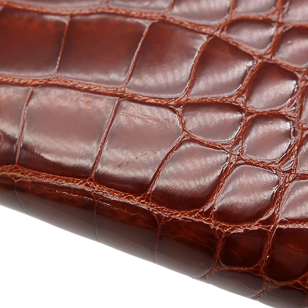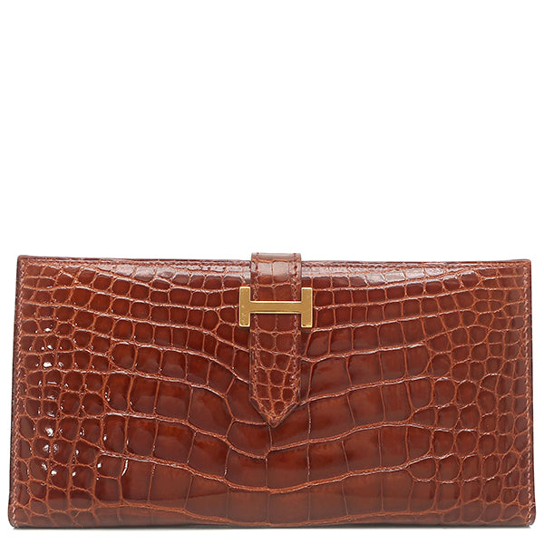 エルメス HERMES ベアンクラシック ブラウン系 アリゲーター 長財布 ゴールド金具 茶 クロコ 二つ折り財布