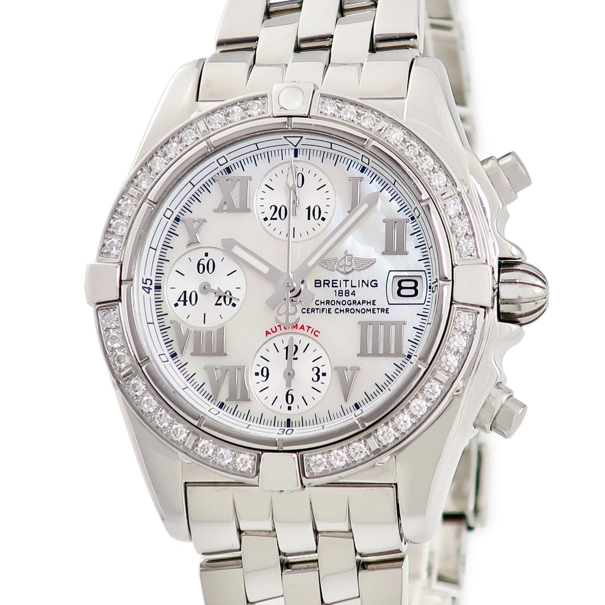 ブライトリング BREITLING クロノ コックピット A13358 自動巻き メンズ 純正ダイヤ ホワイトシェル ラウンド ローマン