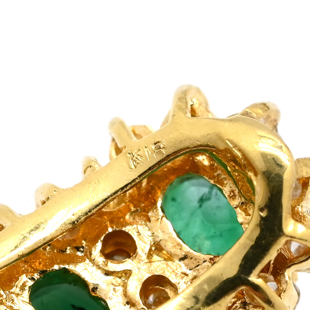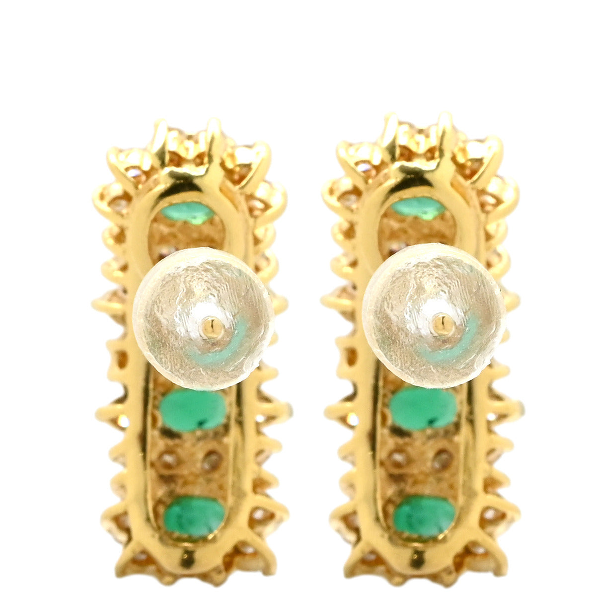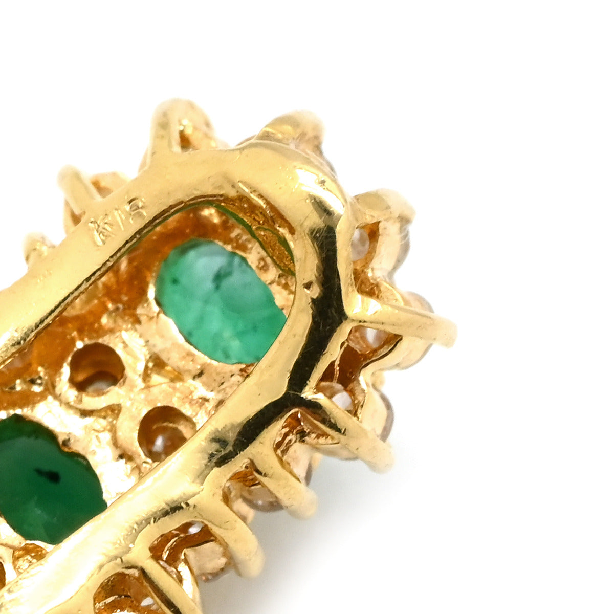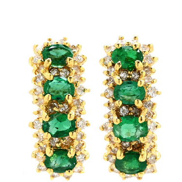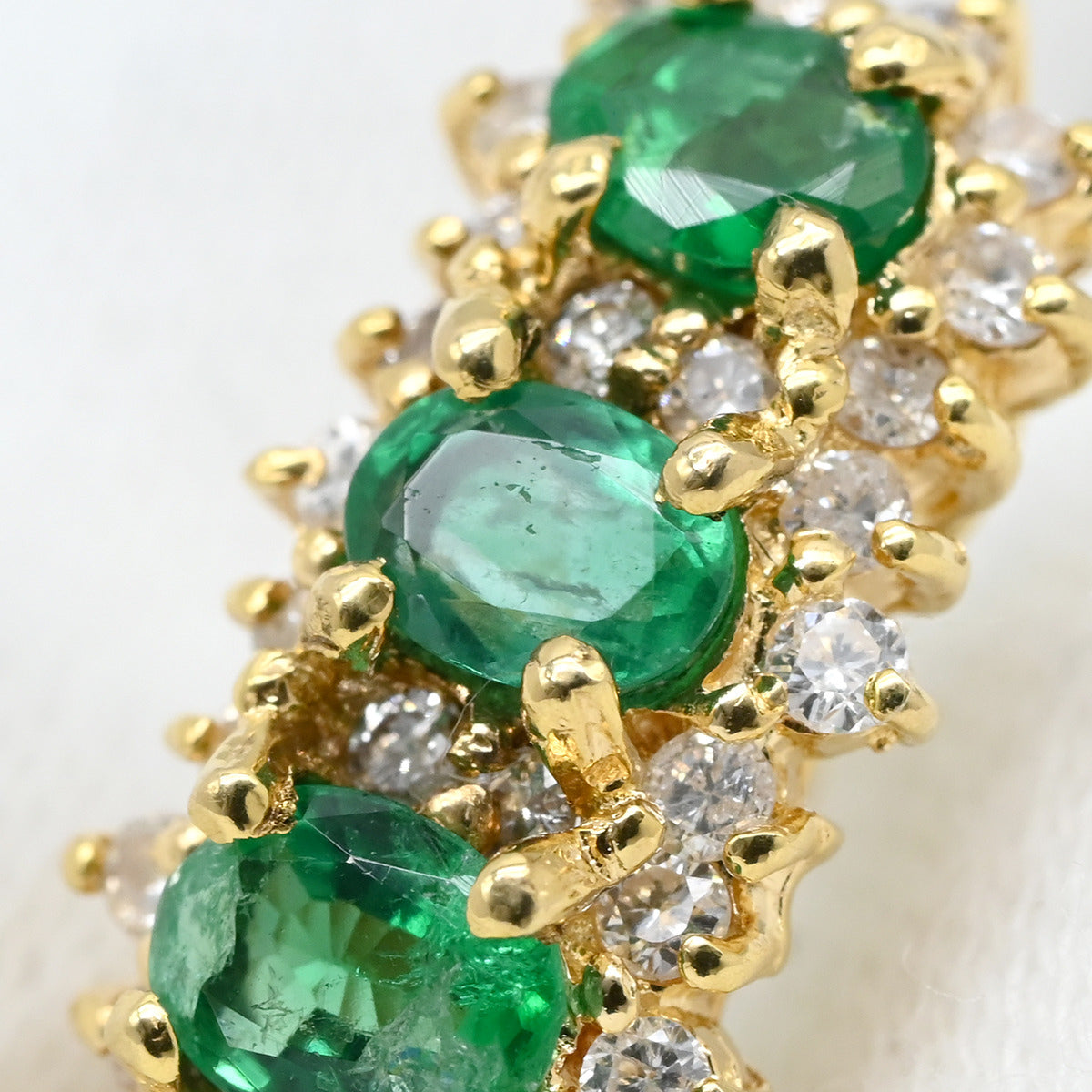 ノンブランド NON BRAND エメラルド4石 ダイヤ イエローゴールド×グリーン ピアス 緑 Au750 K18 オーバル 縦並び アンティーク調