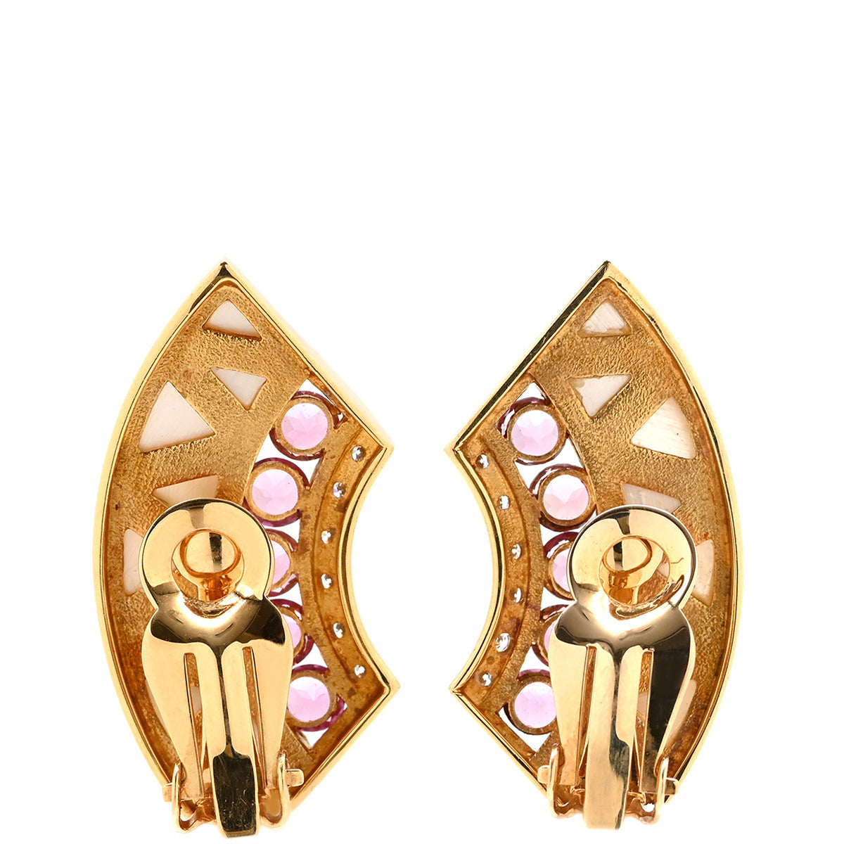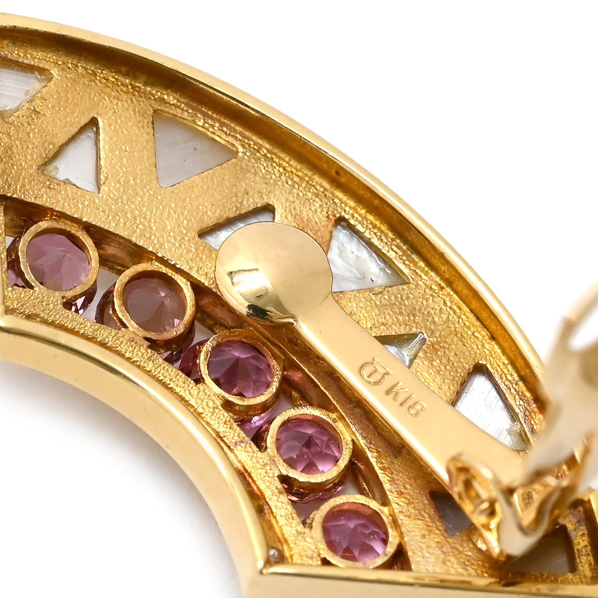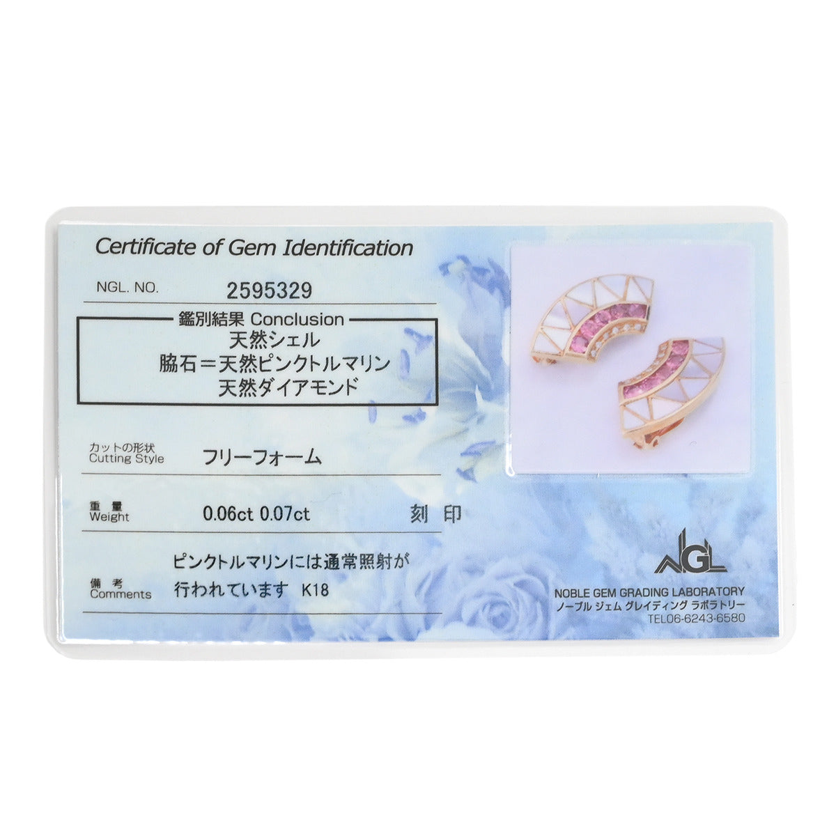 TASAKI TASAKI ホワイト×ピンク×イエローゴールド イヤリング 750YG Au750 ダイヤ シェル トルマリン バイカラー クレセント 扇形