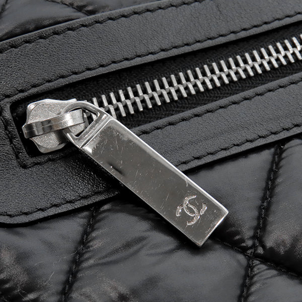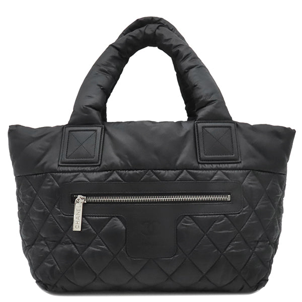 シャネル CHANEL コココクーン トートバッグ PM A48610 ブラック ナイロン レザー トートバッグ シルバー金具 黒