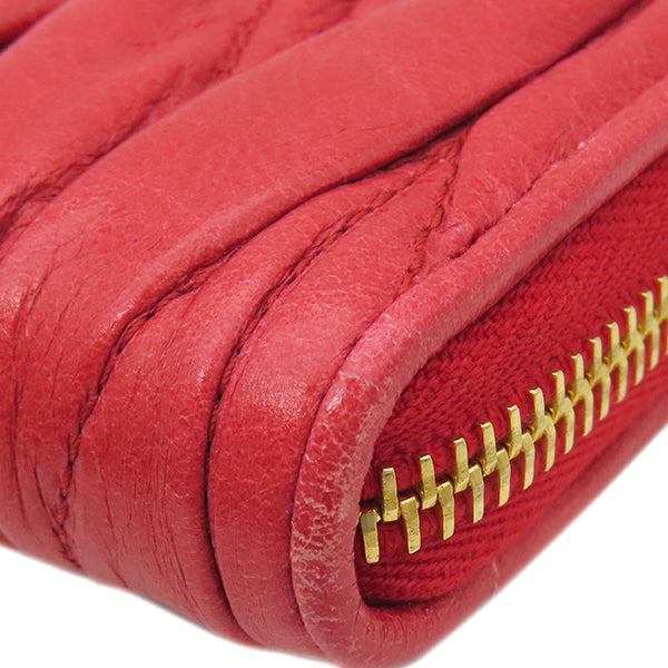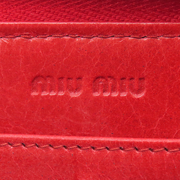 ミュウミュウ MIU MIU マテラッセ ラウンドファスナー 5M0506 レッド レザー 長財布 ゴールド金具 赤