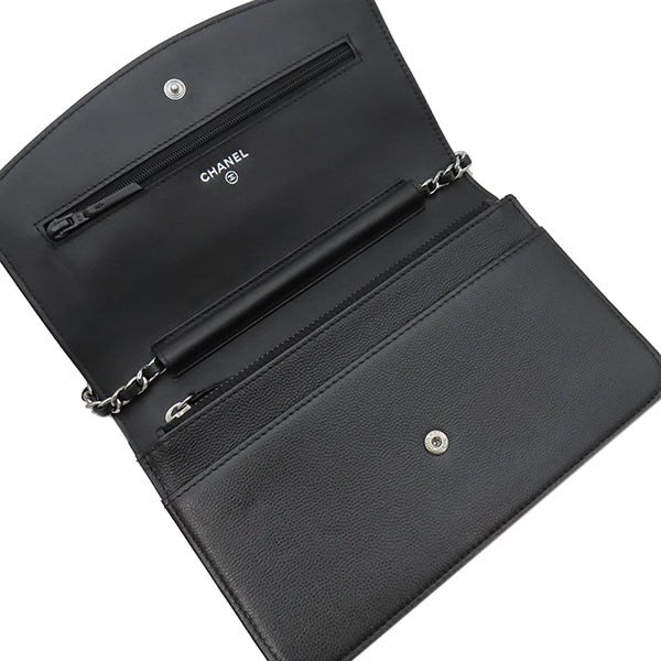 シャネル CHANEL セブルガ チェーンショルダー A46316 ブラック レザー キャビアスキン チェーンウォレット シルバー金具 黒 ココマーク