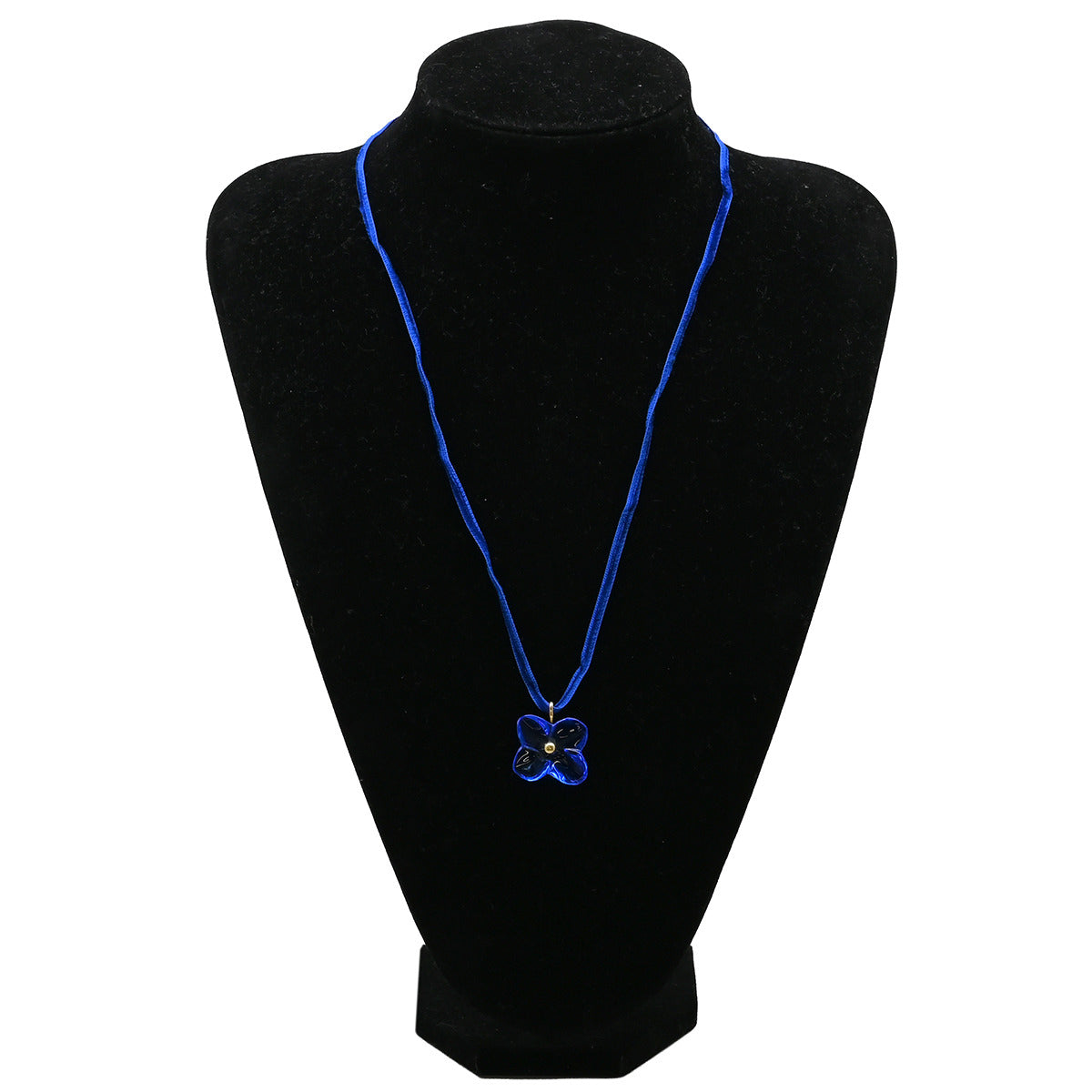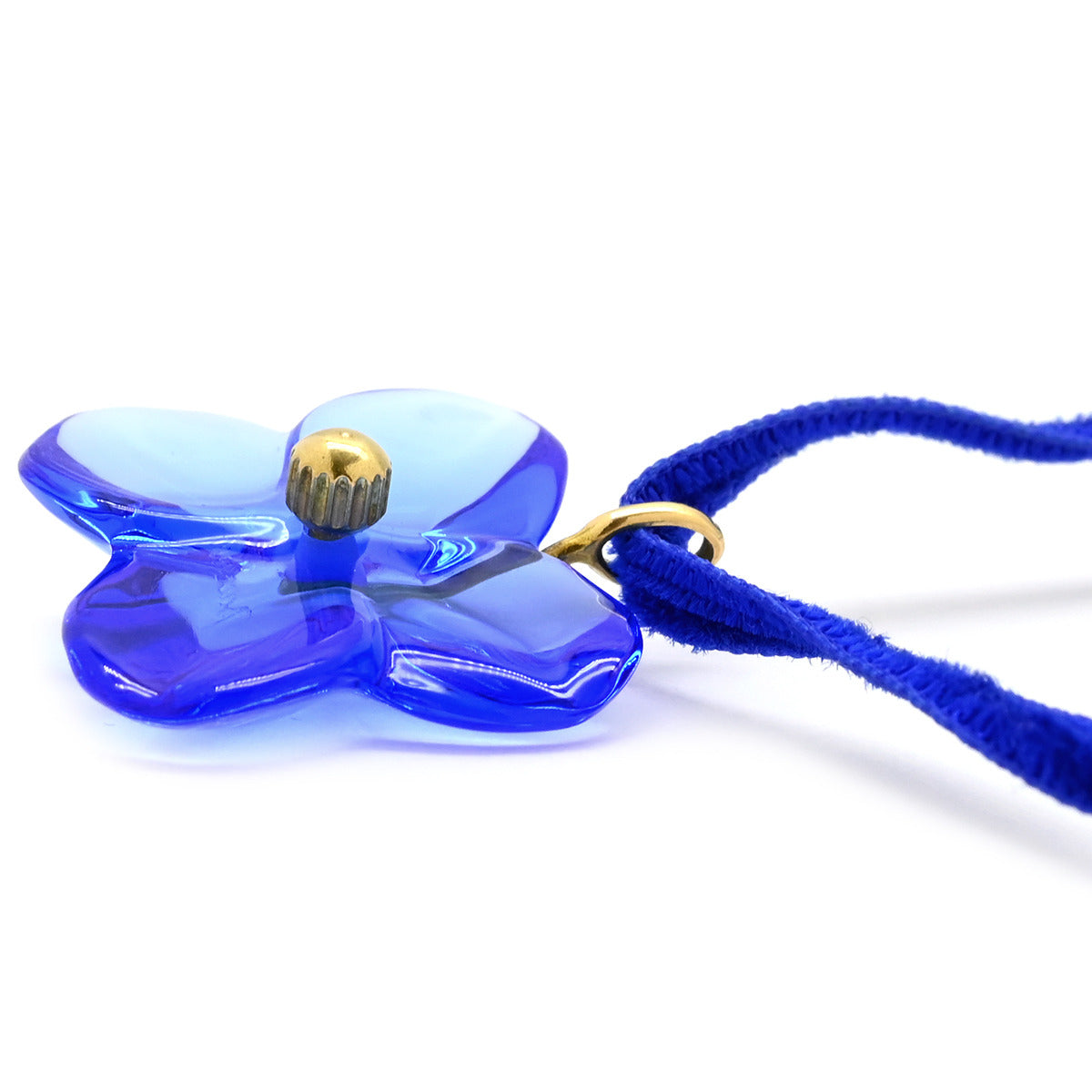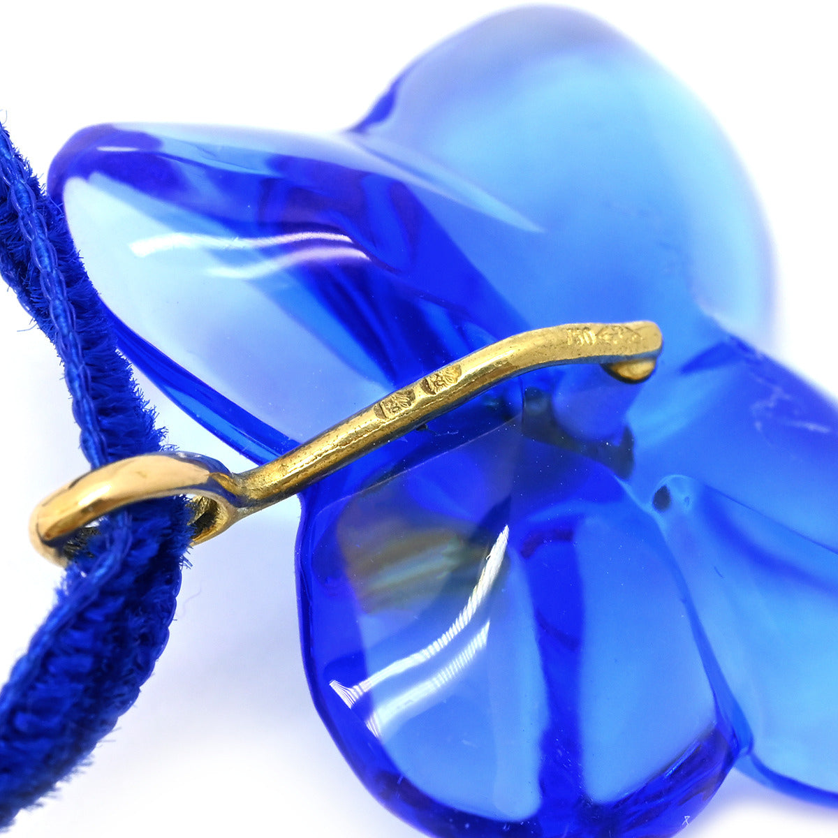 バカラ BACCARAT ブルークリスタル ペンダント ネックレス クリスタル 青 ブルーガラス フラワーモチーフ 18K YG