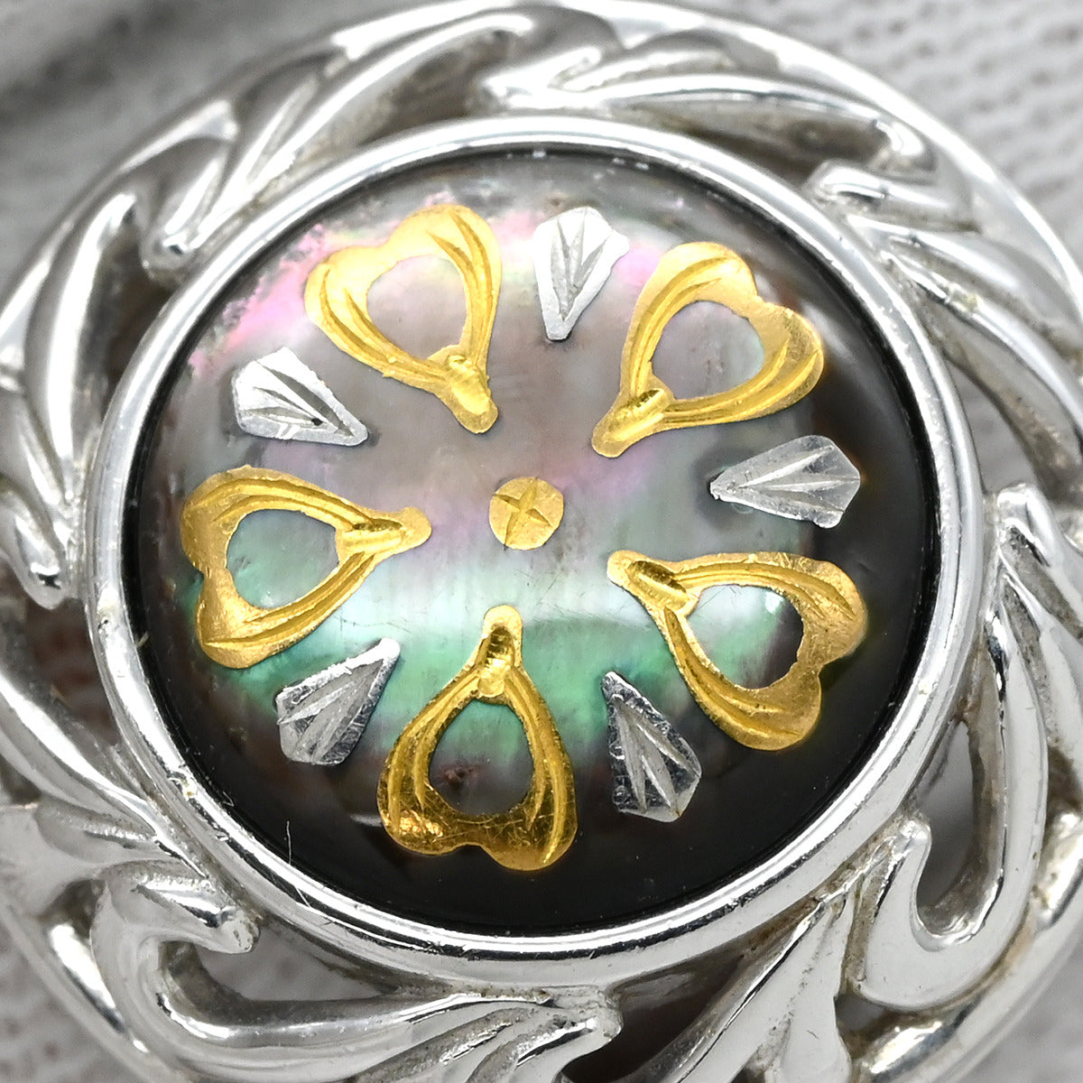 ミキモト MIKIMOTO ピクウェ ホワイトゴールド×ブラック イヤリング MIKIMOTO 黒蝶貝 シェル 花模様 Au750 18K 18金 象嵌