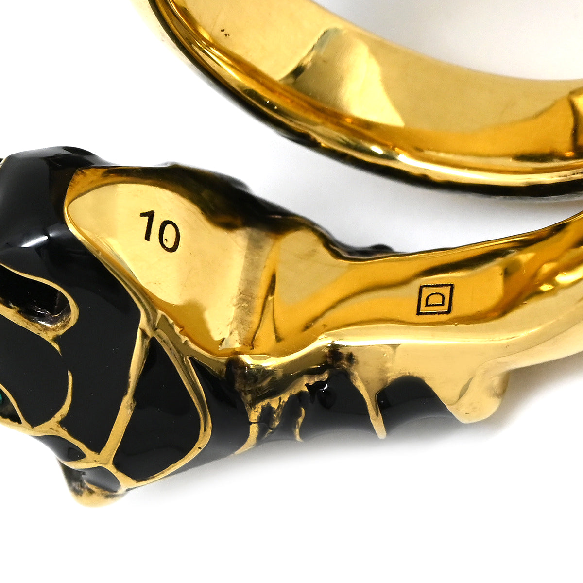グッチ GUCCI ダブルタイガーヘッド ブラック×ゴールド メタル エナメル 色石 リング 指輪 エナメル ゴールド 虎 トラ とら ラップアラウンド 二重 2連 ミケーレ 9号