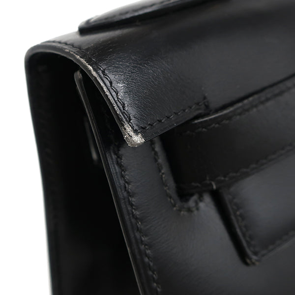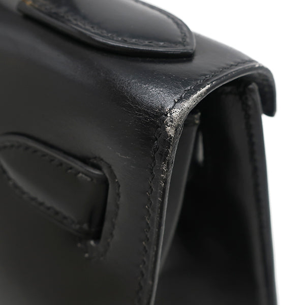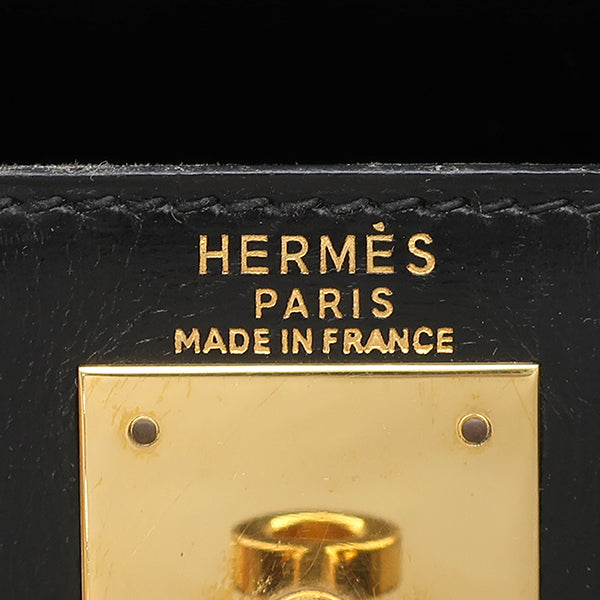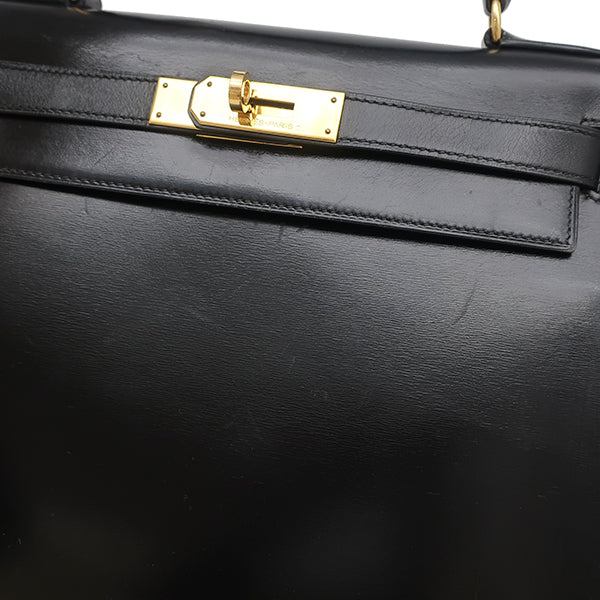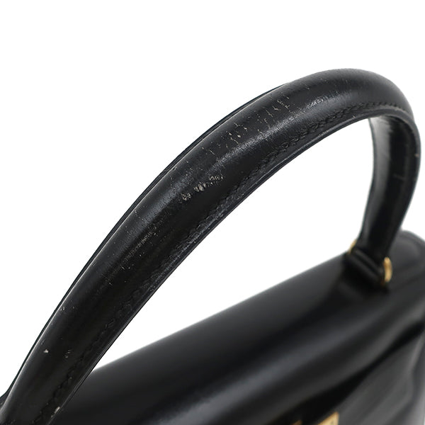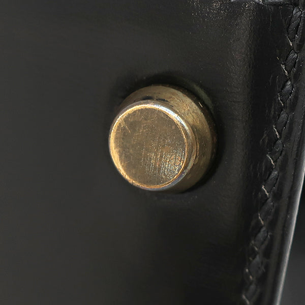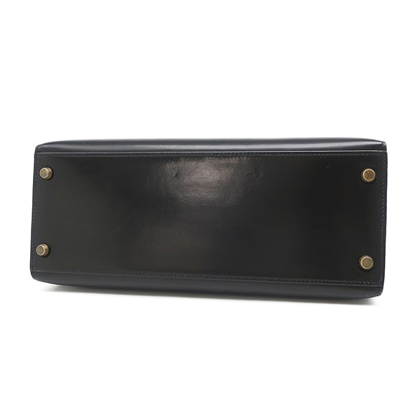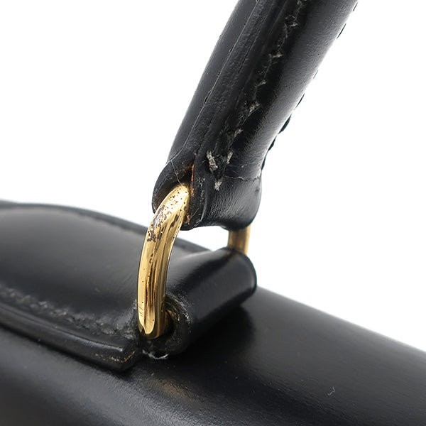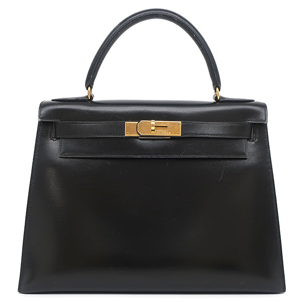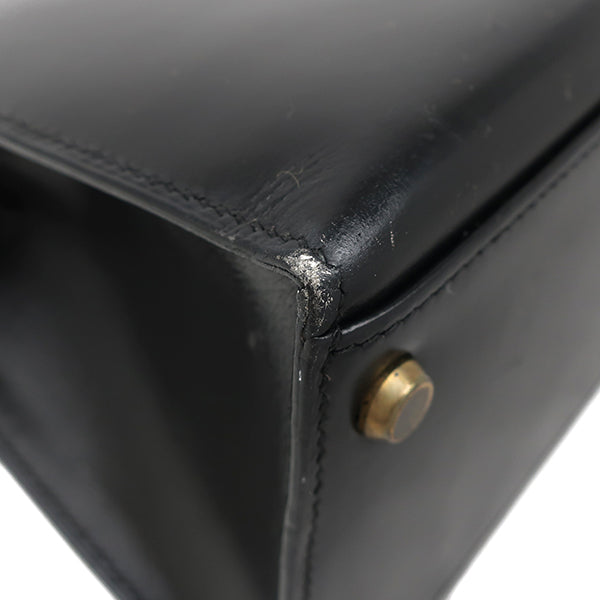 エルメス HERMES ケリー28 外縫い ブラック ボックスカーフ ハンドバッグ ゴールド金具 黒 ショルダーストラップ欠品
