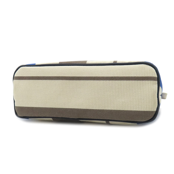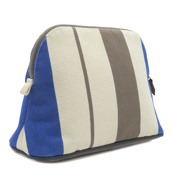 エルメス HERMES ボリードポーチ MM レイユール ロカバール アイボリー×エトゥープ×ブルーアズール コットン ポーチ シルバー金具 オフホワイト グレージュ ネイビー