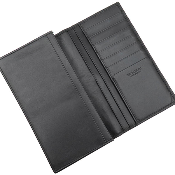 ブルガリ BVLGARI セルペンティ スカリエ マン 284708 ブラック カーフ 長財布 マットシルバー金具 黒 二つ折り 札入れ