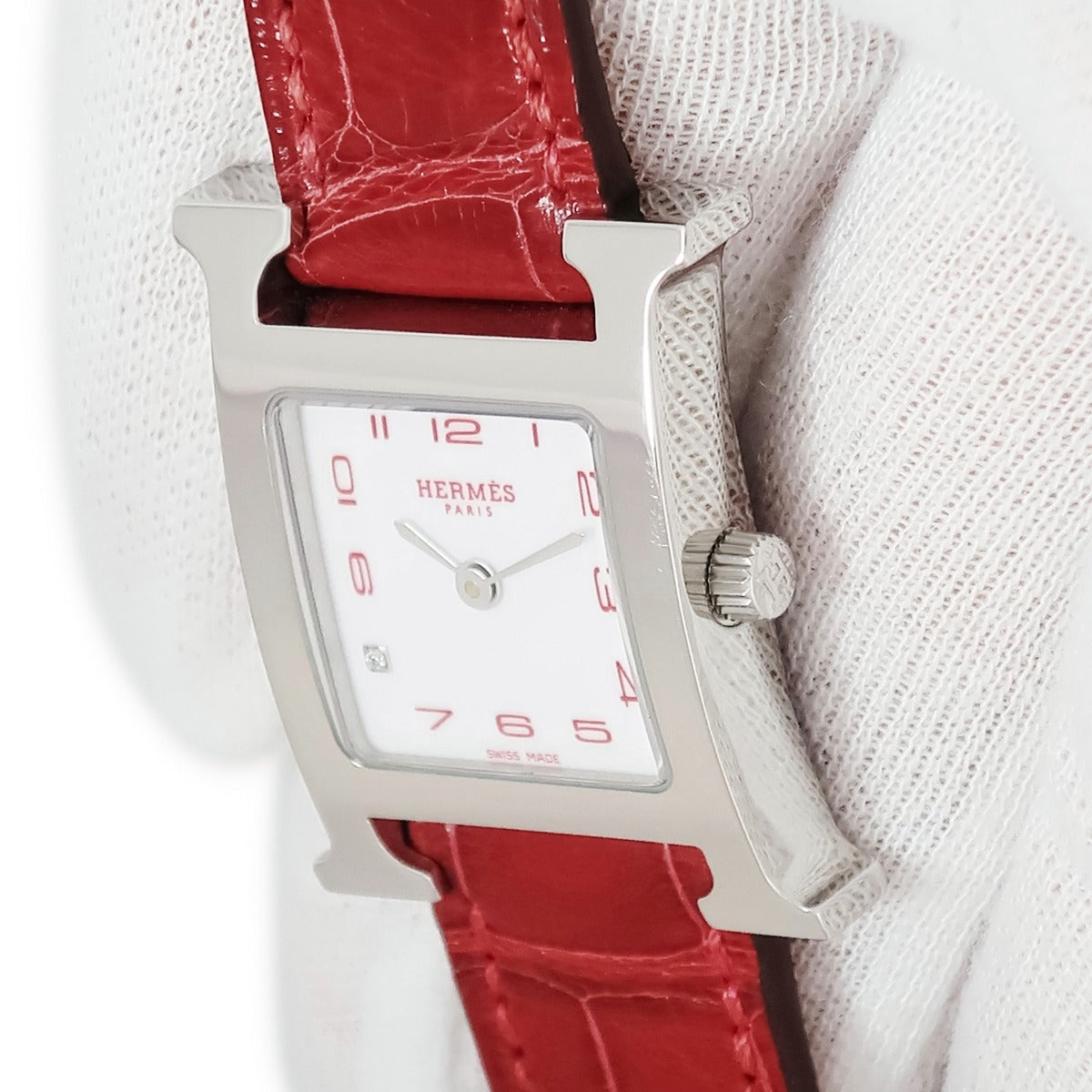 エルメス HERMES Hウォッチ PM HH1.210a クオーツ レディース H型 ホワイト アラビア スクエア 純正ダイヤ スモールモデル