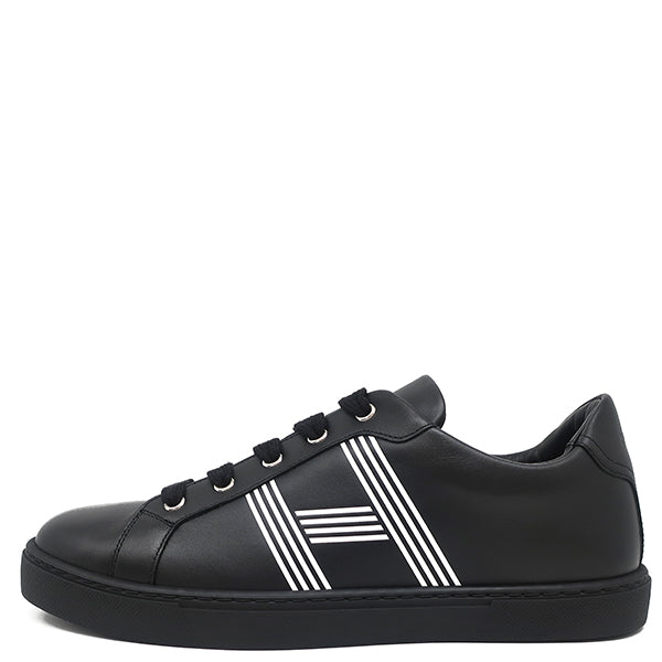 エルメス HERMES アヴァンタージュ H201459Z ブラック レザー #40.5 スニーカー 黒 白ロゴ バイアスH
