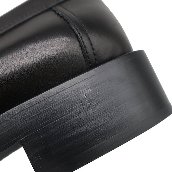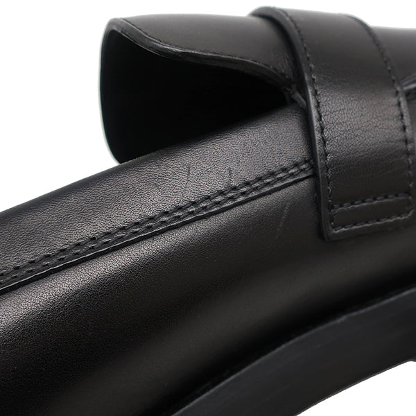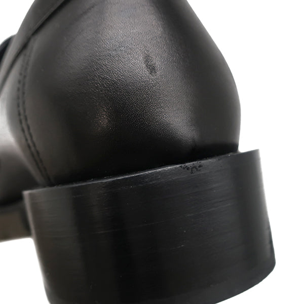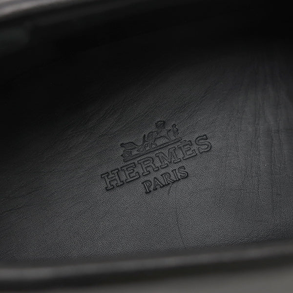 エルメス HERMES シングル モンクストラップ モカシン ブラック レザー #40.5 ローファー シルバー金具 黒 ビジネスシューズ ドレスシューズ ソルド品