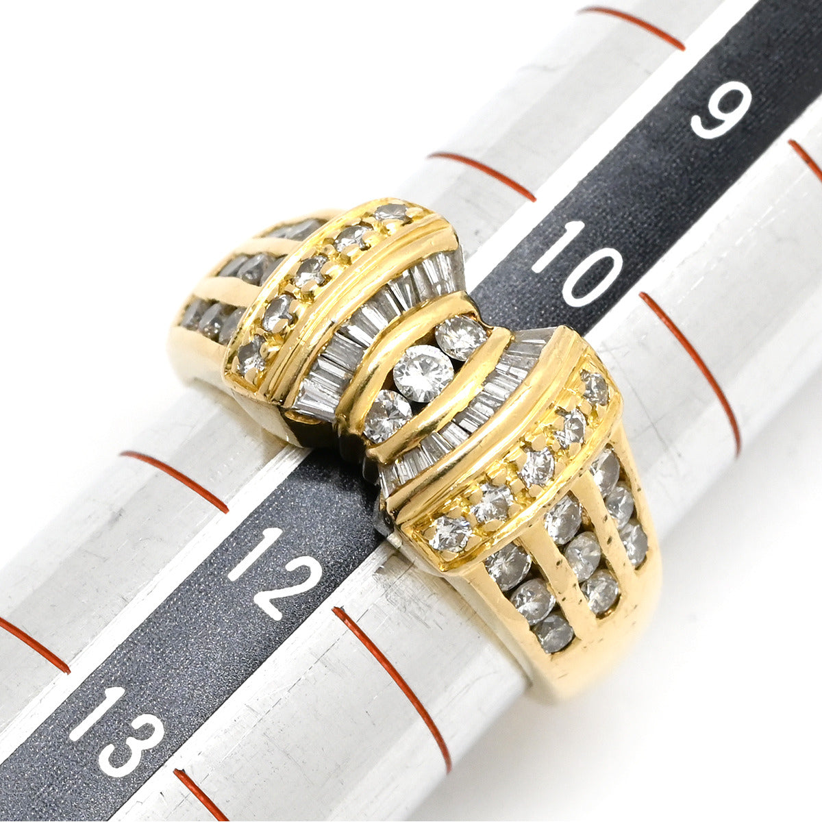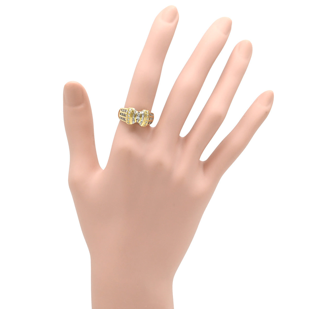 ノンブランド NON BRAND ダイヤ 0.93ct イエローゴールド リング 指輪 Au750 18K 18金 メレダイヤ パヴェ バゲットカット リボンモチーフ 11号