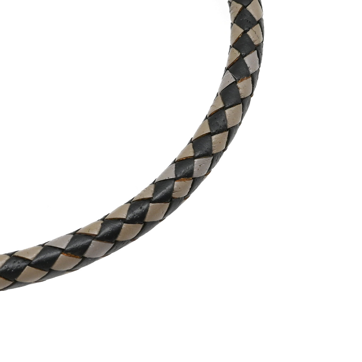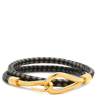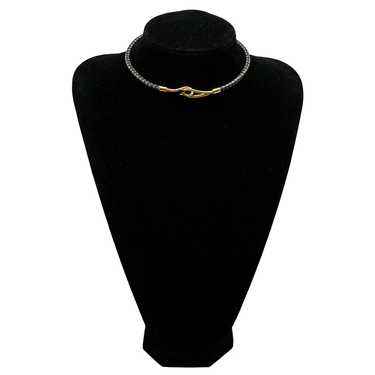 エルメス HERMES ジャンボ ブラック×グレー レザー メタル チョーカー シルバー金具 二連ブレスレット 編み込み