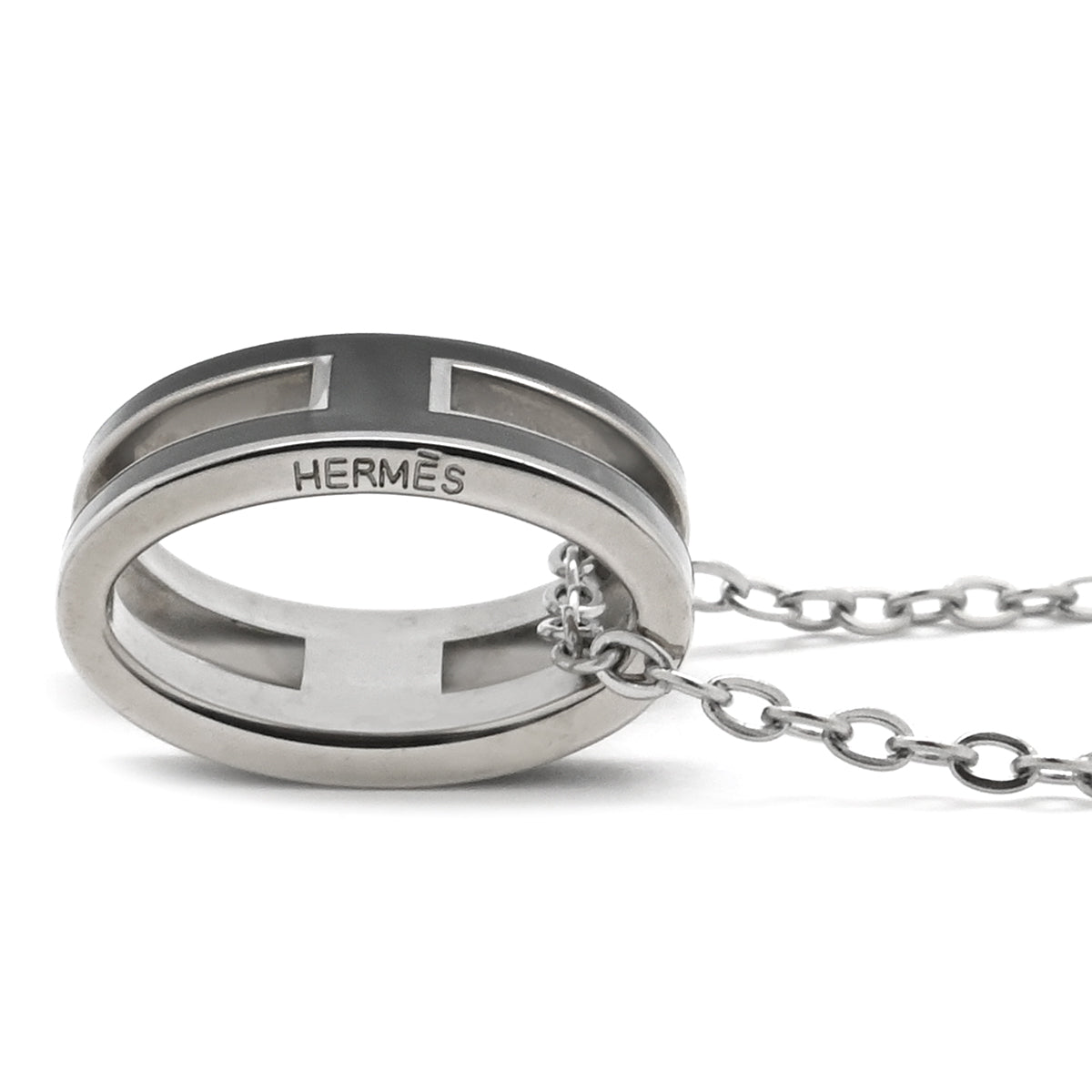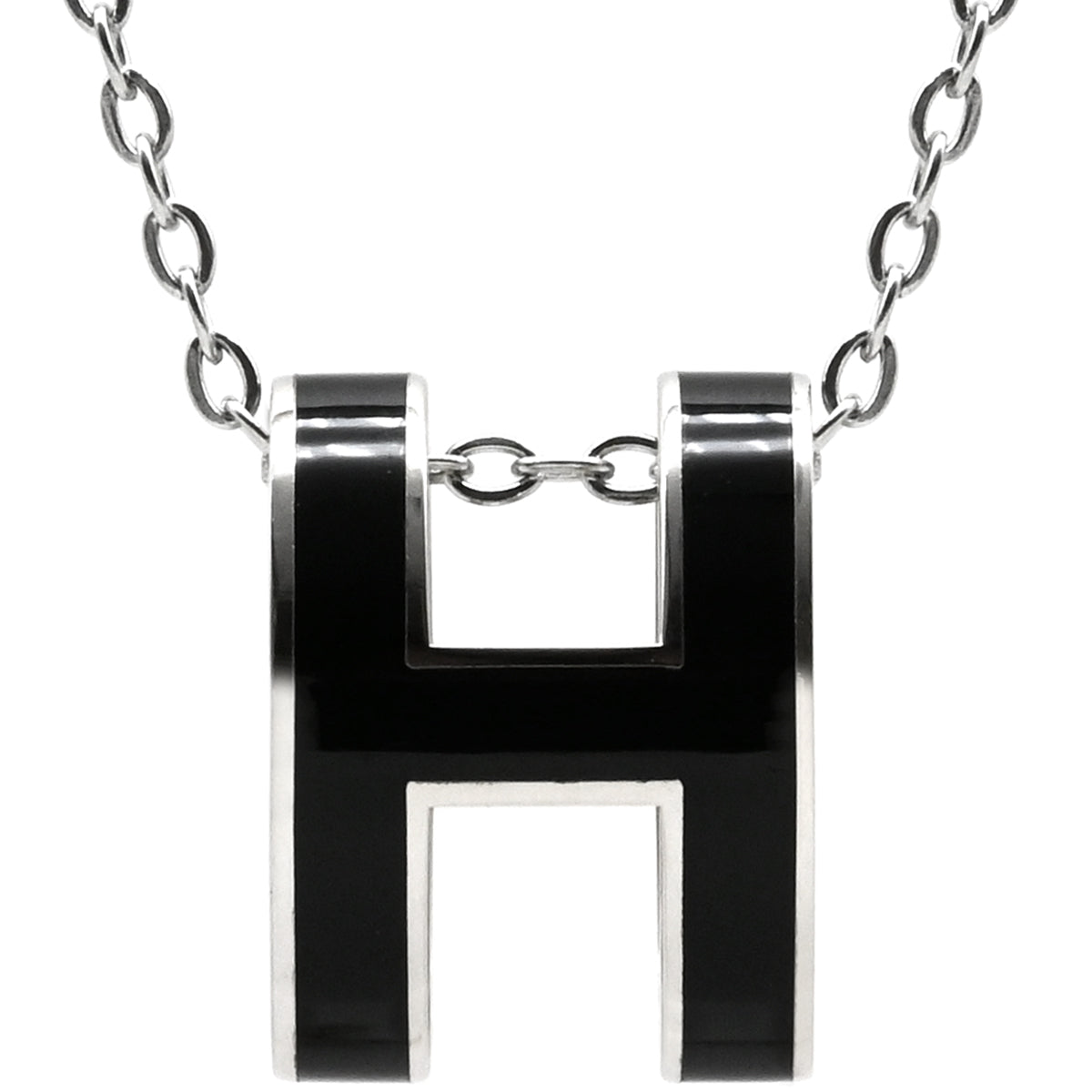 エルメス HERMES ポップアッシュ ペンダント ブラック×シルバー メタル ラッカー ネックレス 黒 Hモチーフ POP H SV金具