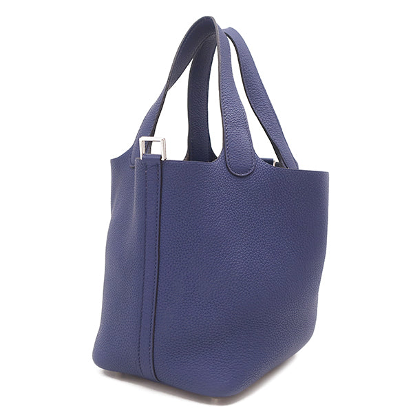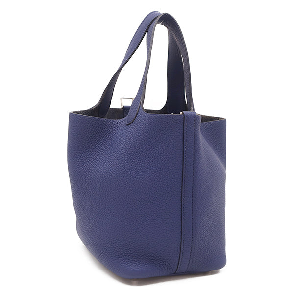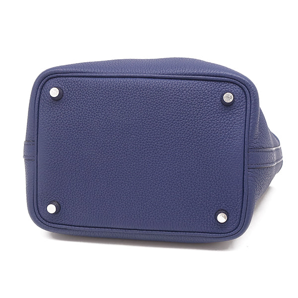 エルメス HERMES ピコタンロックPM ブルーアンクル トリヨンクレマンス ハンドバッグ シルバー金具 青 鍵1本欠品