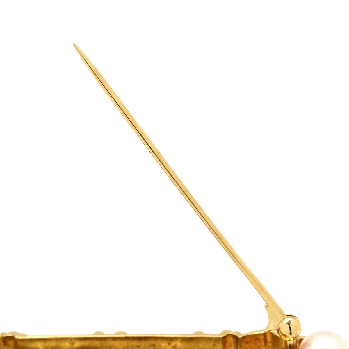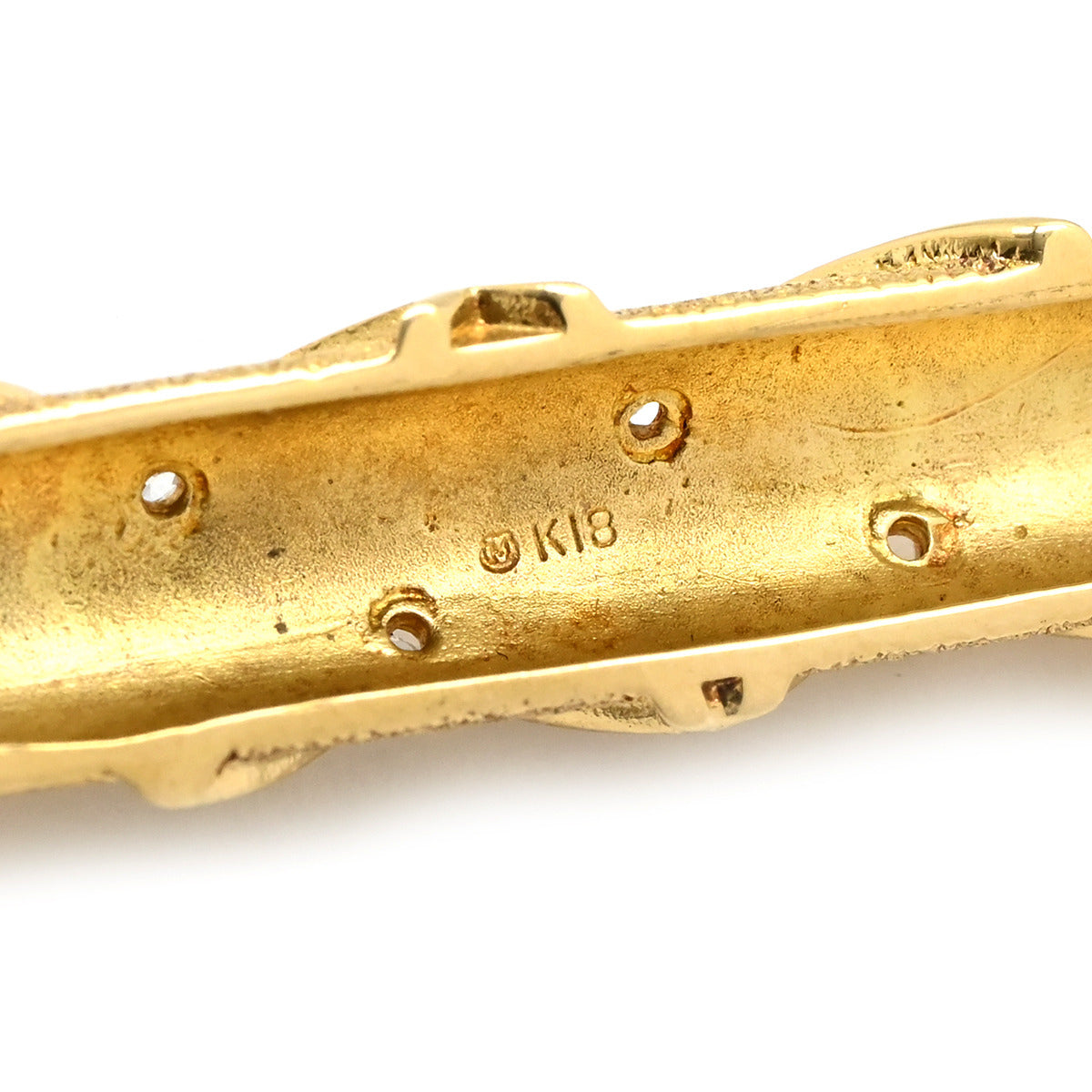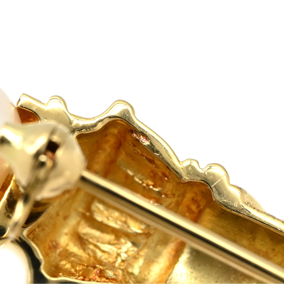 ミキモト MIKIMOTO 2Pパール 4Pダイヤ イエローゴールド ブローチ Au750 18K 18金 あこや アコヤ 真珠 砂目加工 梨地
