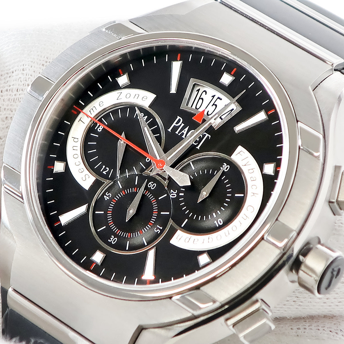 ピアジェ PIAGET ポロ 45 クロノグラフ P10534 G0A34002 自動巻き メンズ OH済 ブラック バー デイト 2タイムゾーン表示