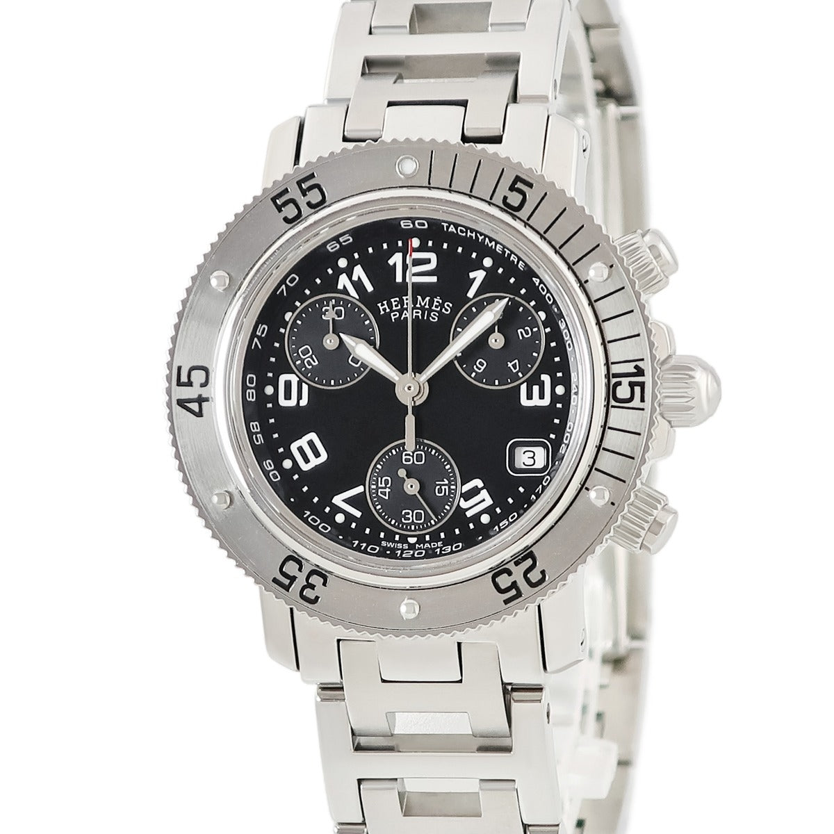 エルメス HERMES クリッパー ダイバー クロノグラフ CL2.310 クオーツ レディース 黒 スモールセコンド デイト アラビア
