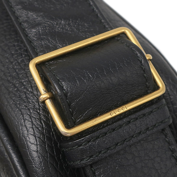 グッチ GUCCI ヴィンテージロゴ メッセンジャーバッグ 523589 ブラック レザー ショルダーバッグ マットゴールド金具 黒 レトロスタイル ロゴプリント