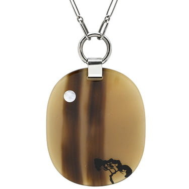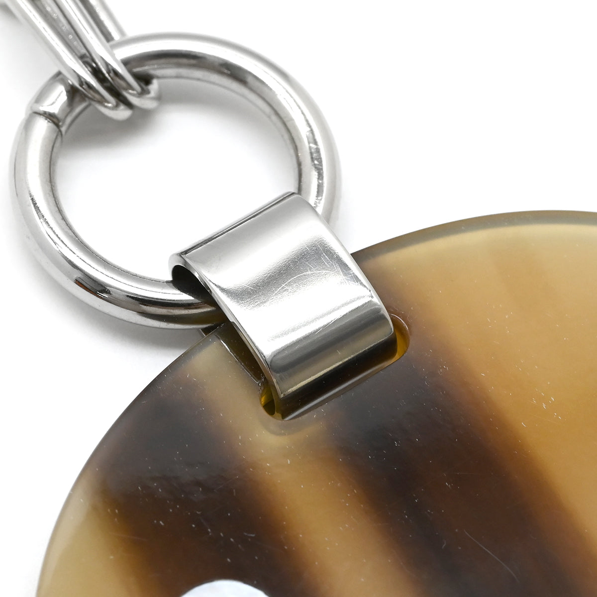 エルメス HERMES バッファローホーン チェーン ペンダント ベージュXブラウン バッファローホーン メタル ラッカー ネックレス オーバル ロングネックレス