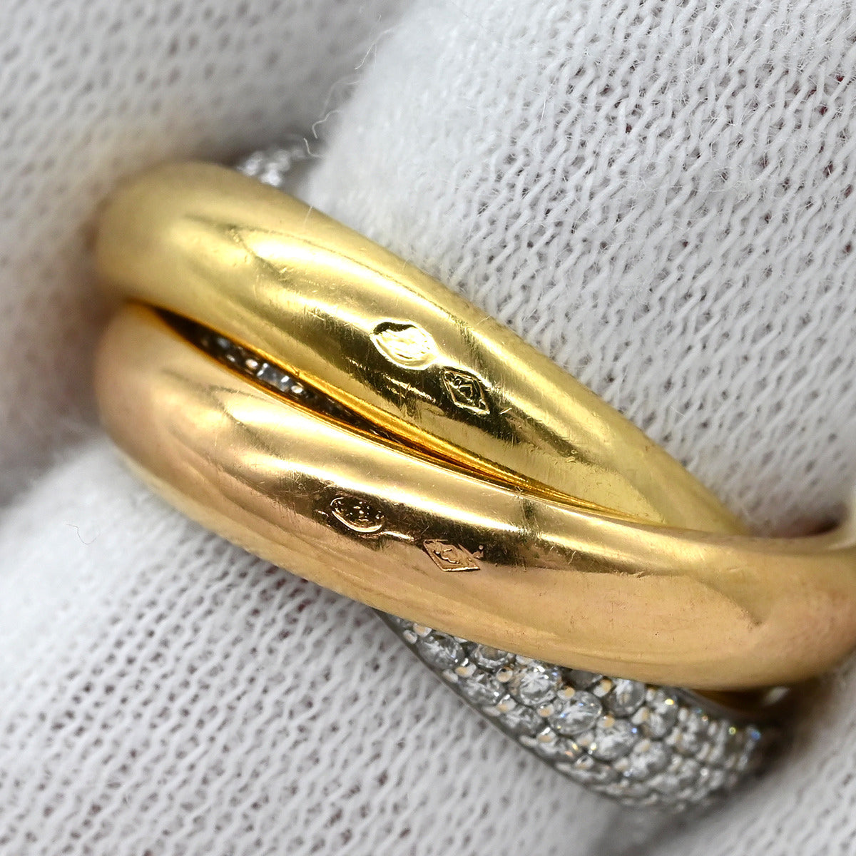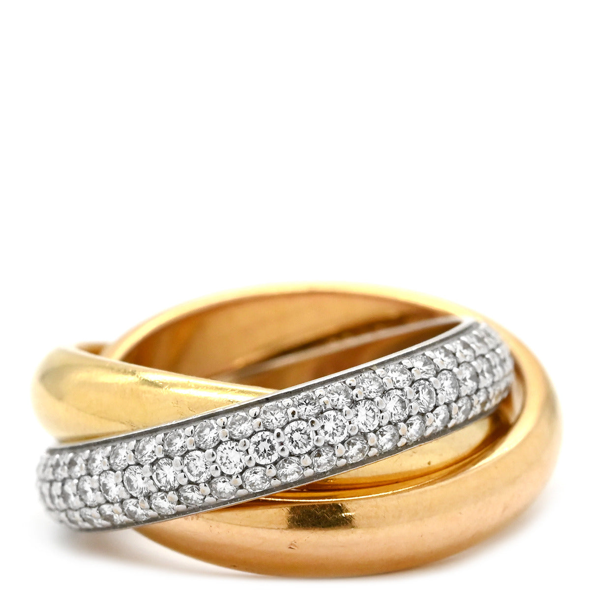 カルティエ Cartier トリニティ セミパヴェ ダイヤ ホワイトゴールド×イエローゴールド×ピンクゴールド #48(JP8) リング 指輪 3カラー 3連リング 18K 750 7.5号